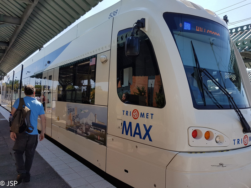 Kelionė prasideda šeštadienį, rugpjūčio 19-ąją. Lengvai neramu dėl ilgo skrydžio, dėl oro prognozių užtemimo rytą, dėl to, kad nepavyko įsigyti specialių akinių saugiam užtemimo stebėjimui (per vėlai susigriebėme – likus dviem savaitėms jie jau visur buvo išparduoti). Dešimtą ryto pakilę iš Amsterdamo, vos valanda vėliau jau leidžiamės Portlande (laiko skirtumas – 9 valandos). Gana greitai praėję imigraciją (šnekus pasienietis labai domisi mūsų Aliaskos planais ir juokdamasis sako, kad jau po kelių valandų pavargsime nuo nesibaigiančių miško vaizdų) ir atgavę lagaminus, pasiimame išsinuomotą mašiną ir važiuojame tiesiai į viešbutį. Jis visai netoli oro uosto, bet yra jau Vašingtono, o ne Oregono valstijoje. Portlandas – kitoje Kolumbijos upės pusėje. Dar tik po vidurdienio, bet mūsų kambarys jau paruoštas. Pasidėję lagaminus ir po dušu nusiplovę kelionės dulkes, išsiruošiame apžiūrėti Portlando. Į miesto centrą nusprendžiame važiuoti metro traukiniu – stotis netoli viešbučio, kelionė užtruks apie 40 minučių, mašina važiuodami užtruktume gal net ilgiau, nes eismas labai intensyvus. Palikę mašiną nemokamame parkinge prie stoties, iš automato nusiperkame bilietus ir netrukus jau sėdime traukinyje. Vagonas modernus, švarus ir tvarkingas, sėdynės patogios, yra ir kondicionierius – jis labai reikalingas, nes lauke +30.