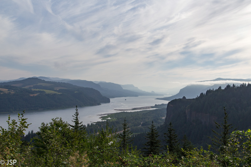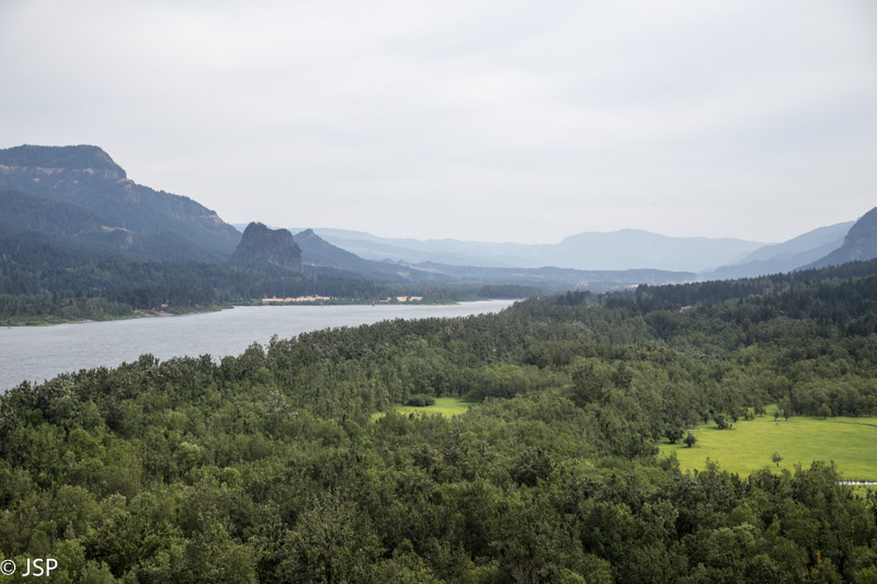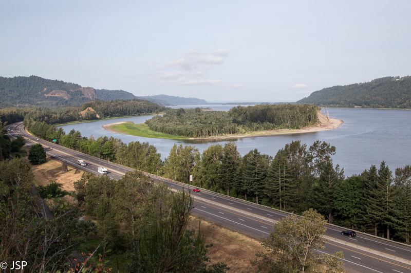 Papusryčiavę važiuojame link Kolumbijos upės tarpeklio (Columbia River Gorge). Kelias vingiuoja tankiu mišku, bet netrukus pasirodo ir pirmieji vaizdai. Trumpam stabtelime Portland Women’s Forum apžvalgos aikštelėje, nuo kurios veriasi puikūs vaizdai į upės slėnį.