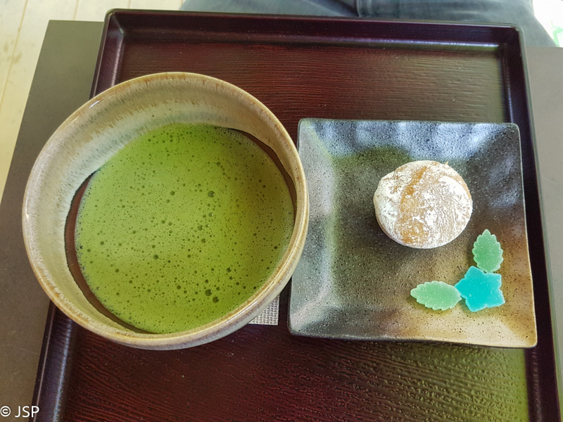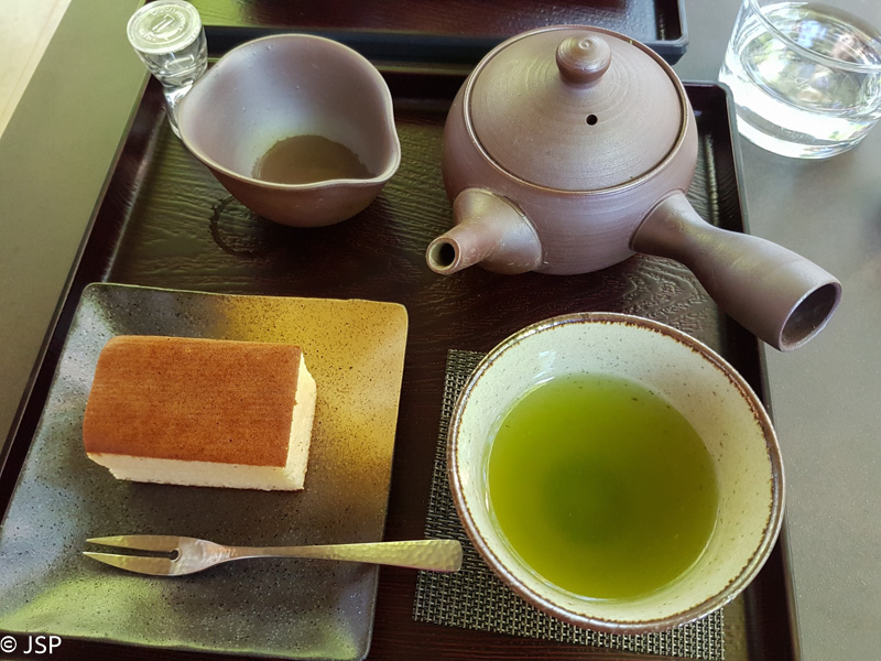 Pasiekę japoniškąjį sodą (Japanese Garden) ir atstovėję eilutę prie bilietų, netrukus stovime dar vienoje eilėje, prie Umami kavinės. Ragaujame sentcha ir matcha arbatą beigi japoniškus saldumynus. Mano pyragaitis labai skanus, bet arbata nesužavi. Padavėja sakė, kad jos skonis labai subtilus, bet mano skonio receptoriai užfiksuoja tik šieno prieskonį.