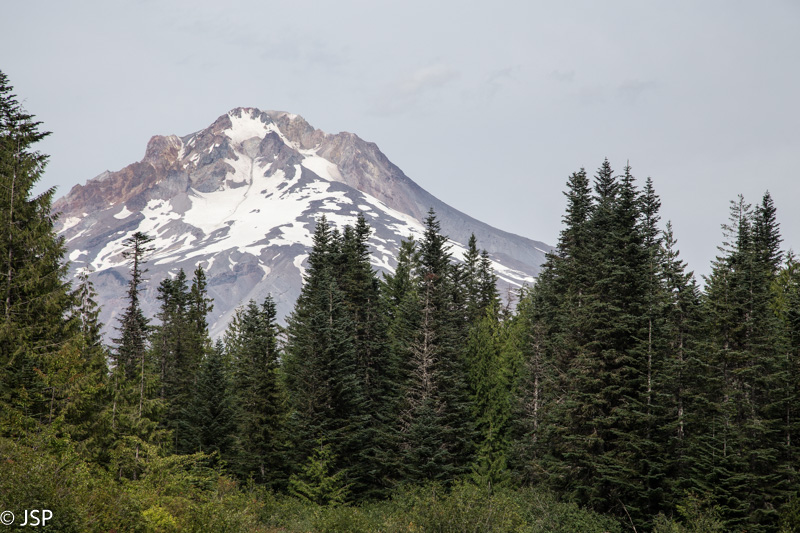 Pabaigę Horsetail Loop trasą, jau niekur nebestojame ir važiuojame tiesiai į Hood River miestelį. Čia kelias šakojasi – galima važiuoti toliau palei upę arba sukti į pietus, link Hood kalno. Trumpai pasivaikščioję jaukiomis miestelio gatvėmis ir greitai papietavę mažoje pustuštėje kavinukėje, grįžtame prie mašinos ir sukame link Mount Hood National Forest. Kelias nuvilia – ištisai važiuojame per mišką, vaizdų labai mažai. Vos porą kartų virš miško šmėsteli kūgio formos Hood ugnikalnis – bet dėl tų retų vaizdų tikrai neverta buvo taip toli važiuoti.