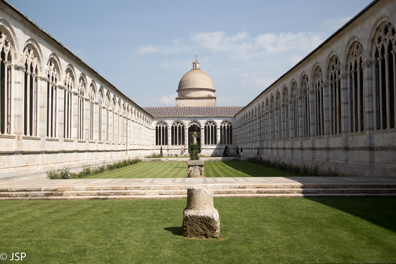 Camposanto Monumentale – elegantiškai simetriškas balto marmuro pastatas Stebuklų aikštės šone. Kolonomis paremtos galerijos iš visų pusių supa stačiakampio formos kiemą. Sakoma, kad Camposanto buvo pastatytas ant šventos žemės, laivu parvežtos iš Kalvarijų kažkurio kryžiaus žygio metu. Iš čia ir pavadinimas – camposanto, šventasis laukas. Camposanto galerijose ir nišose – marmuro antkapiai, skulptūros ir spalvingos freskos.