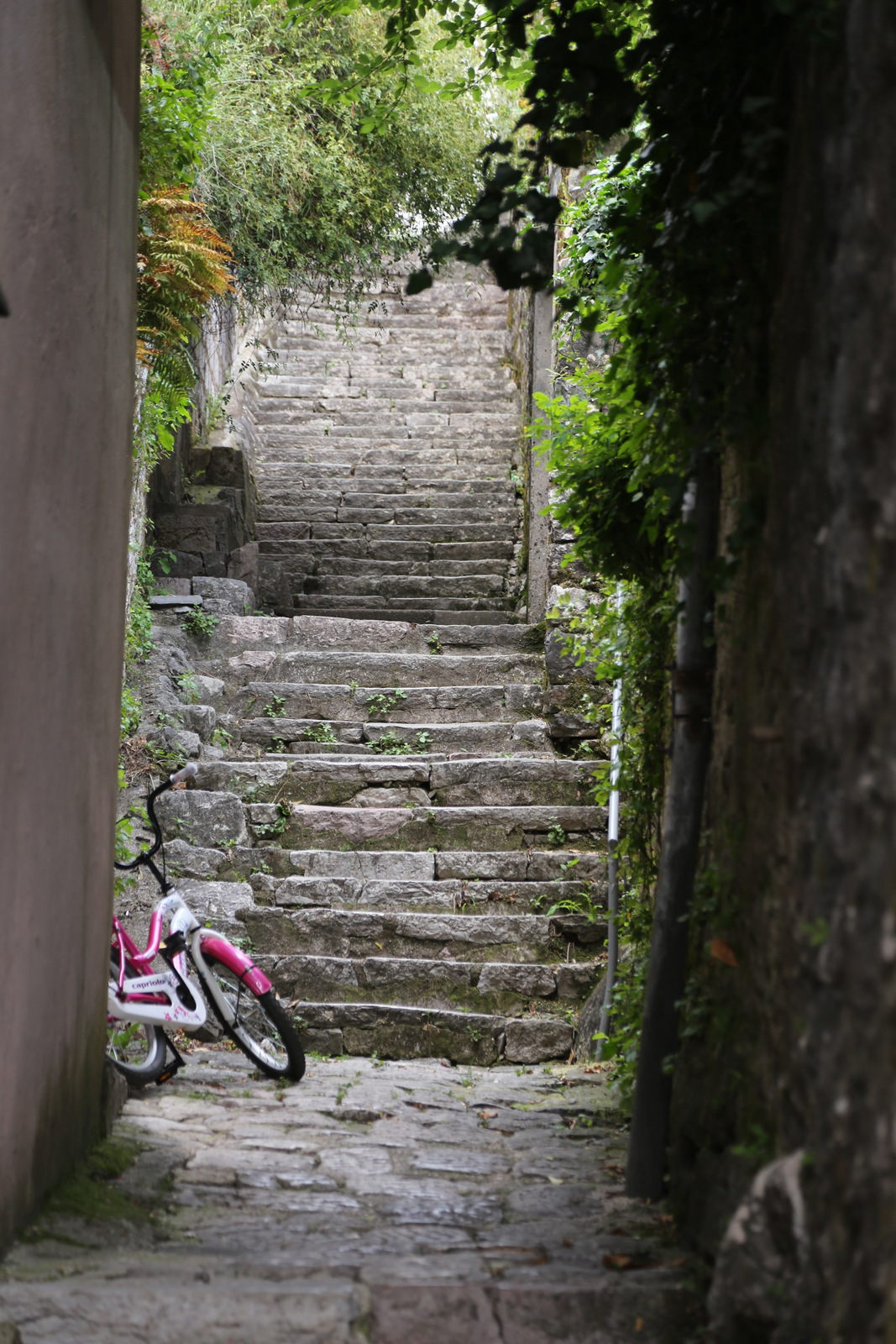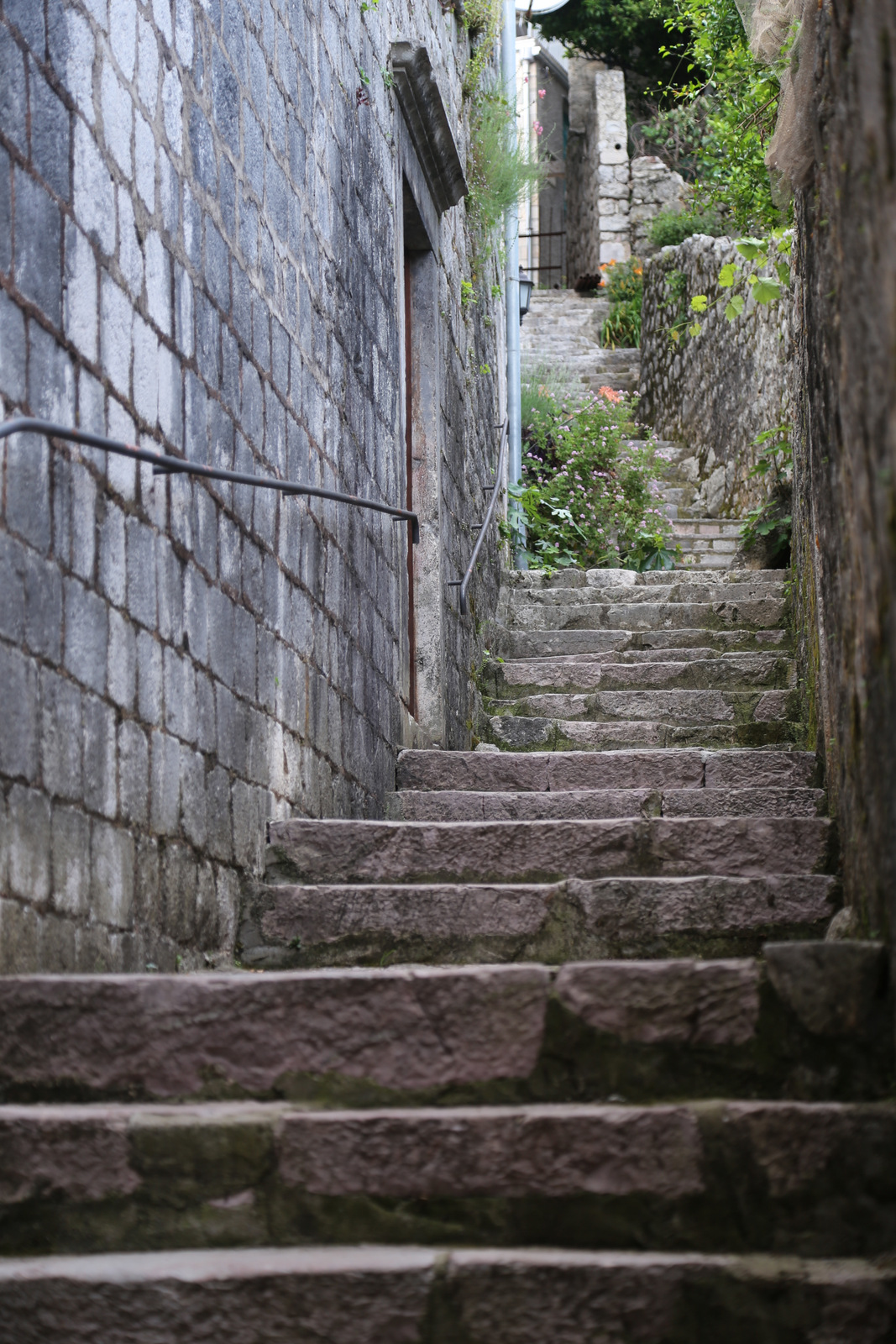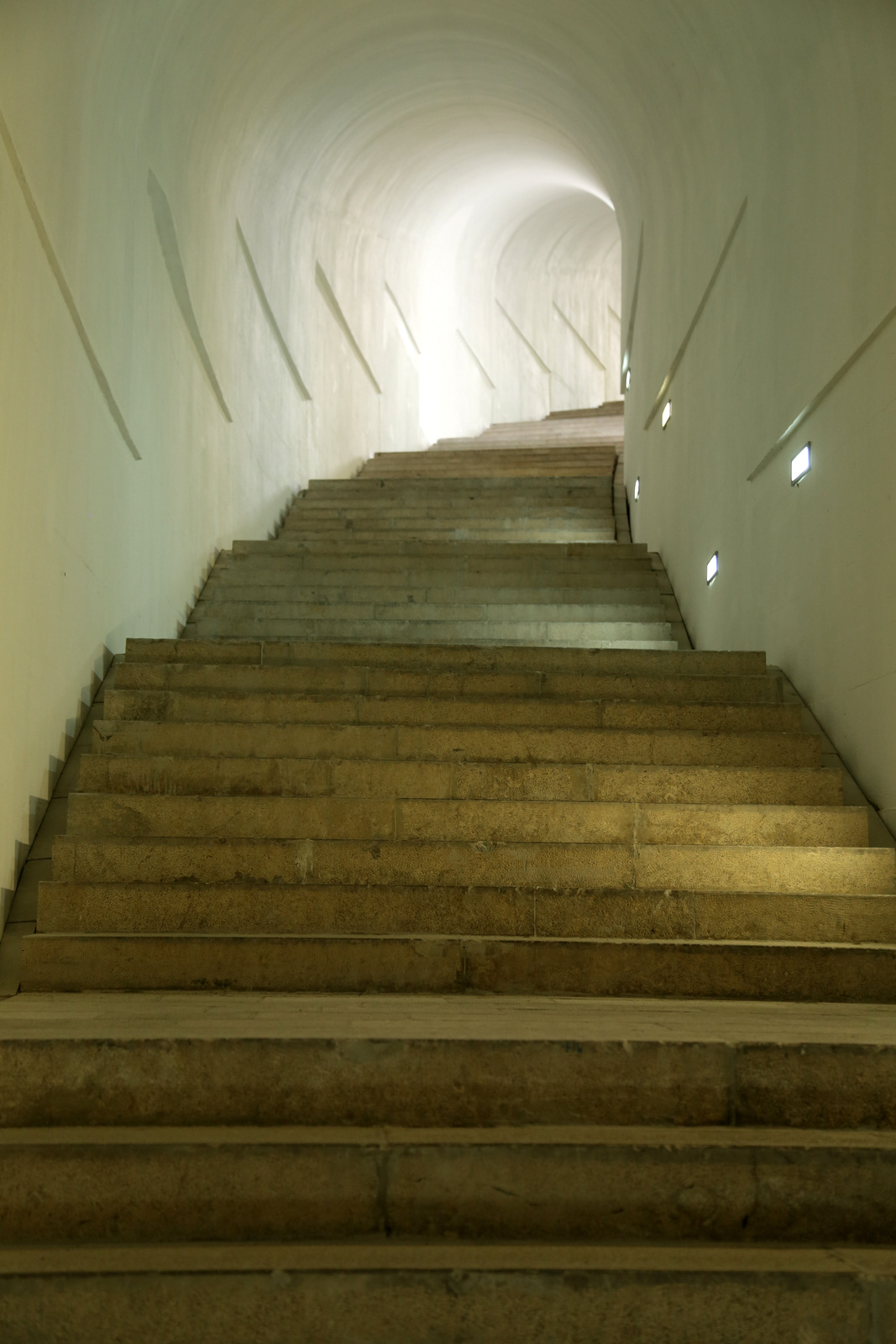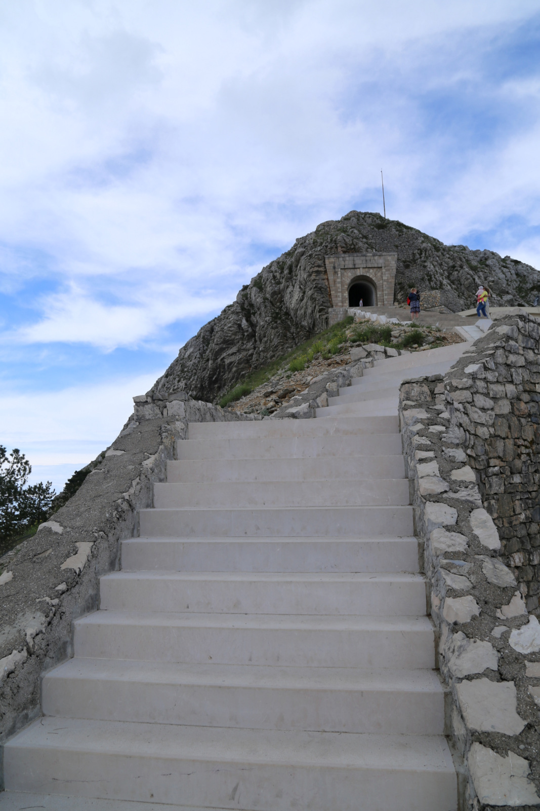 Į Lovčen viršūnę veda ilgi statūs laiptai. Nuobodoka jais lipti, juolab vaizdų jokių. Man labiau patiktų atviri laiptai, bet matyt buvo kažkokia priežastis pastatyti būtent uždarą tunelį.