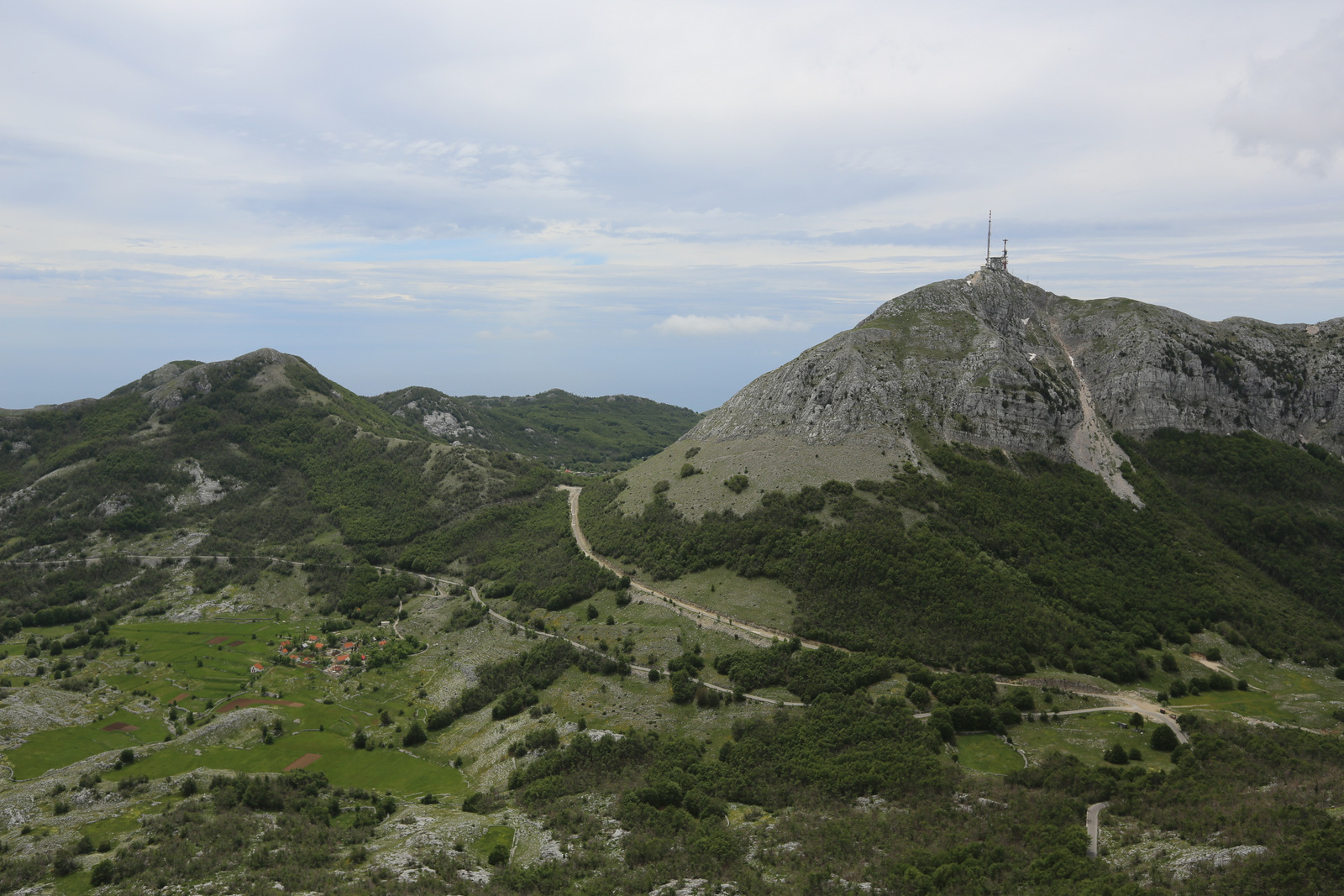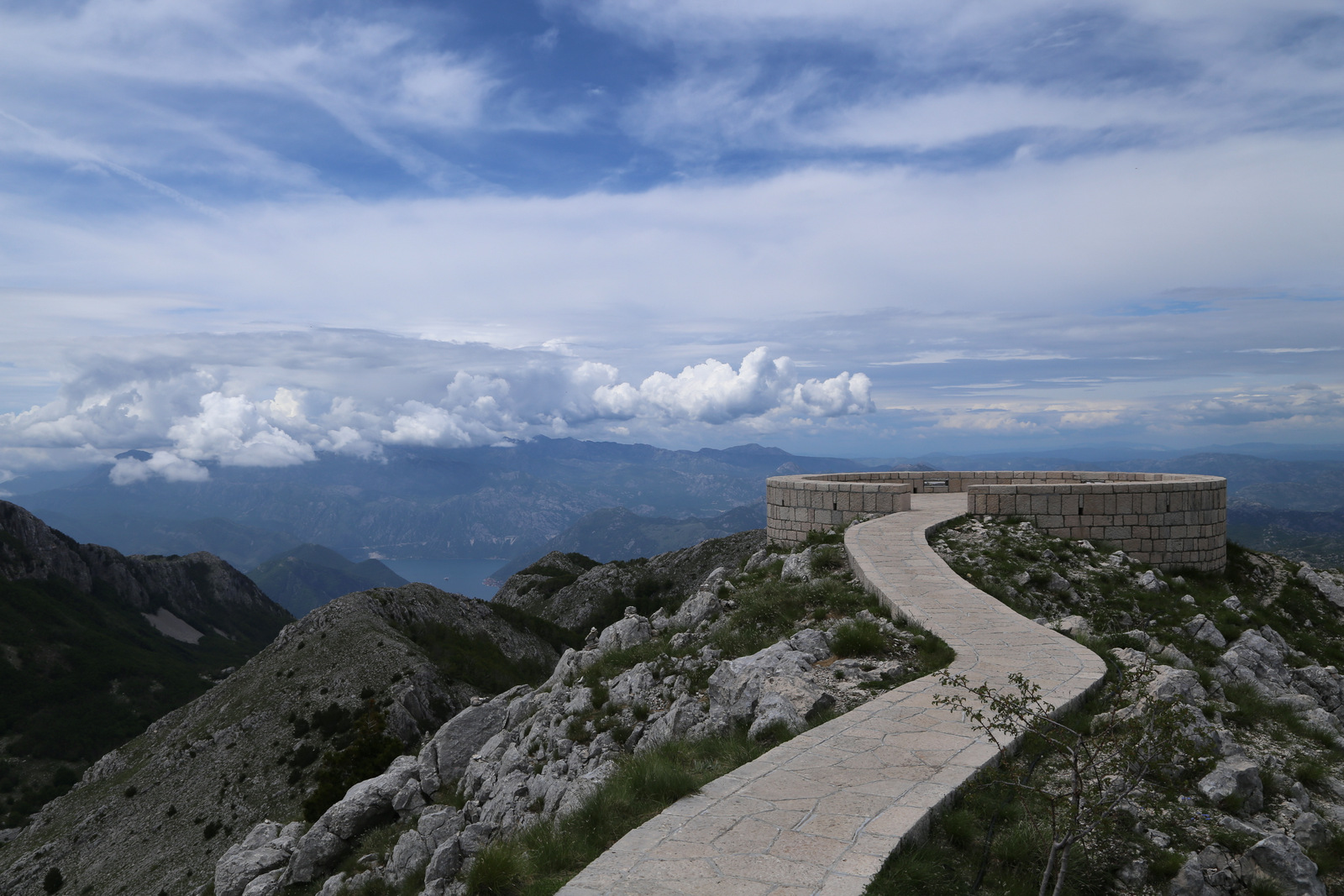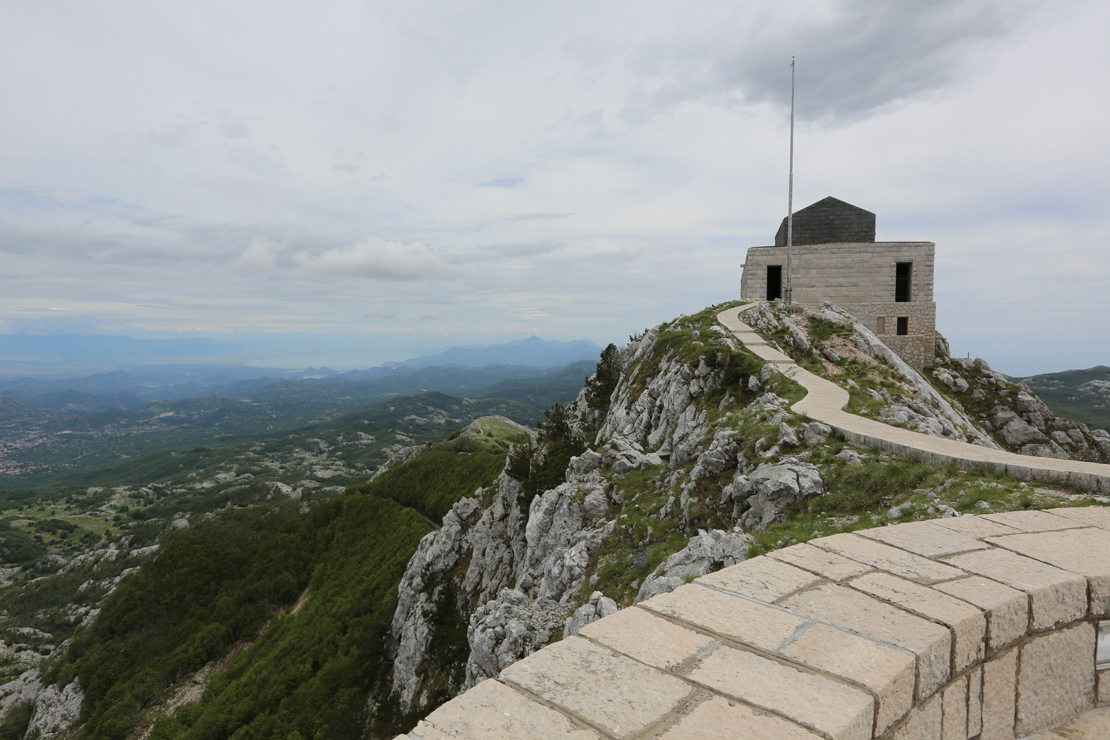 Galiausiai išnyrame iš tunelio jau kalno viršūnėje. Kitoje keteros pusėje – Njegoš mauzoliejus, už jo – apžvalgos aikštelė. Už įėjimą reikia susimokėti. Sargas klausia, kokia kalba norim informacijos: angliškai, vokiškai, rusiškai? Aš sakau: angliškai, vyras atitaria: rusiškai! Žmogelis su nuostaba mus nužvelgia ir paaiškina juodkalnietiškai, ką čia galima pamatyti, o lankstinuką visgi gaunam anglišką.