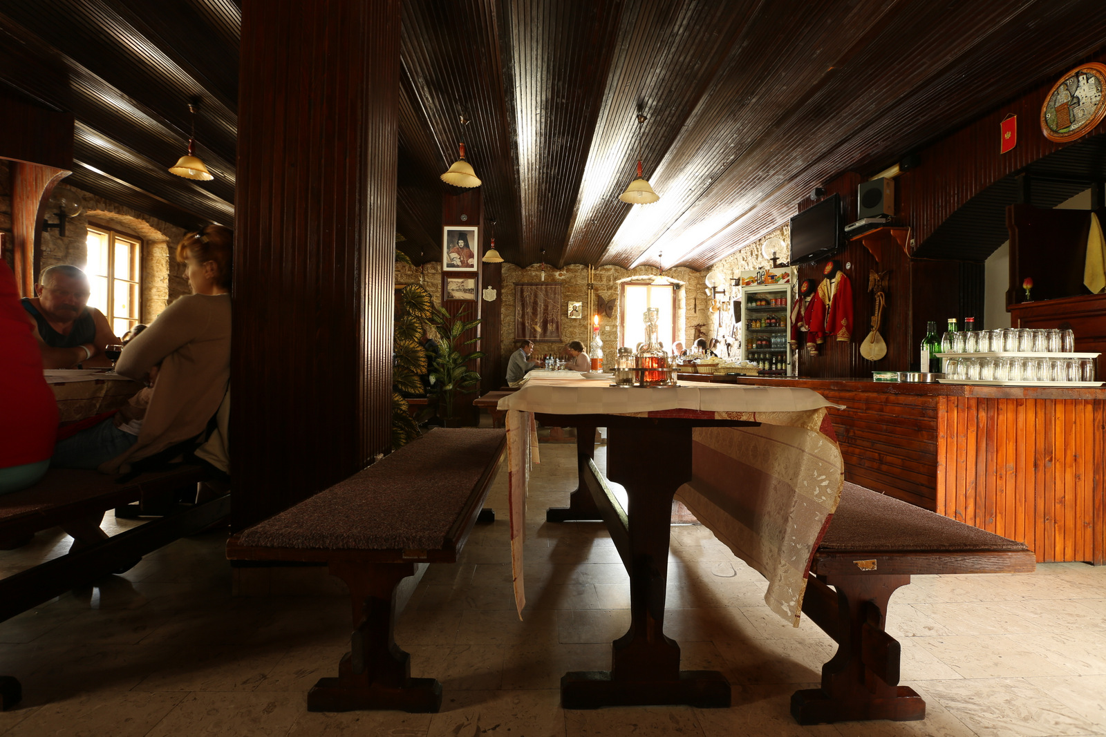 Nedidelis Njeguši kaimelis įsikūręs žaliame slėnyje tarp aukštų kalnų. Pagrindinėje aikštėje yra kelios kavinės (konobos), veikia suvenyrų ir maisto produktų (kumpio, medaus, sūrio) turgelis. Dideliame parkinge išsirikiavę gal 15 džipų. Visur pakrantėje matėme jeep safari reklamas, bet nei nepagalvojom, kad tie džipai važiuoja ne po vieną, o karavanais. O gal tiesiog didelė grupė išsiruošė į ekskursiją džipais ir sustojo Njeguši papietauti. Einam pietauti ir mes, į aikštės pakraštyje stovinčią konobą. Viduje labai jauku, ir netikėtai daug lankytojų (kaip vėliau paaiškėja, tai tų pačių aikštėje stovinčių džipų keleiviai). Užsisakome pršut kumpio, ožkos sūrio, naminės baltos duonos. Sotu ir labai skanu.
