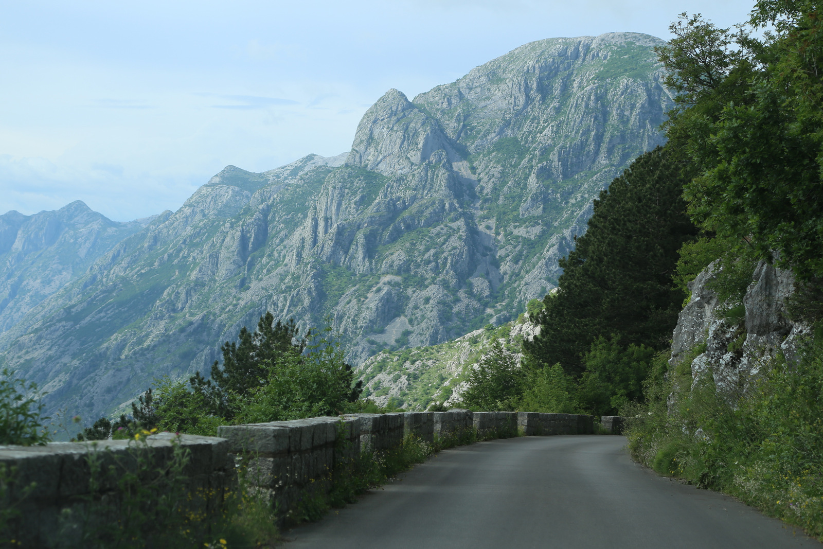Pavalgę pereinam turgelį. Aš nusiperku baltą vąšeliu nertą vasarinę skraistę (ketinau tik pasižiūrėti, bet moteriškė pasitaikė gudri, iškart užmetė tą skraistę man ant pečių, o kai pamačiau, kaip gražiai ji krenta, tai jau kaip ir nebuvo priežasties nebepirkti), paskui dar prigriebiam medaus ir sūrio. Atlikę turistinę pareigą, judam toliau. Netrukus pasiekiam garsųjį Kotor-Lovčen serpantinų kelią, stačiu kalno šlaitu vingiuojantį žemyn link įlankos. Kelyje daugiau nei dvidešimt seprantinų, ir kiekvienas posūkis pažymėtas skaičiuku, kad nereiktų patiems tų serpantinų skaičiuoti. Gražiausi vaizdai – pačiam viršuj. Šia prasme turbūt geriau kilti tuo keliu nuo Kotor į Lovčen, nes važiuojant žemyn iškart pamatai patį gražumą, o toliau jau kartojasi daugmaž tas pats, ir vis mažiau įspūdinga. Bet pravažiuoti tikrai verta, nesvarbu, kuria kryptimi, nes vaizdai labai gražūs, kad ir besikartojantys.