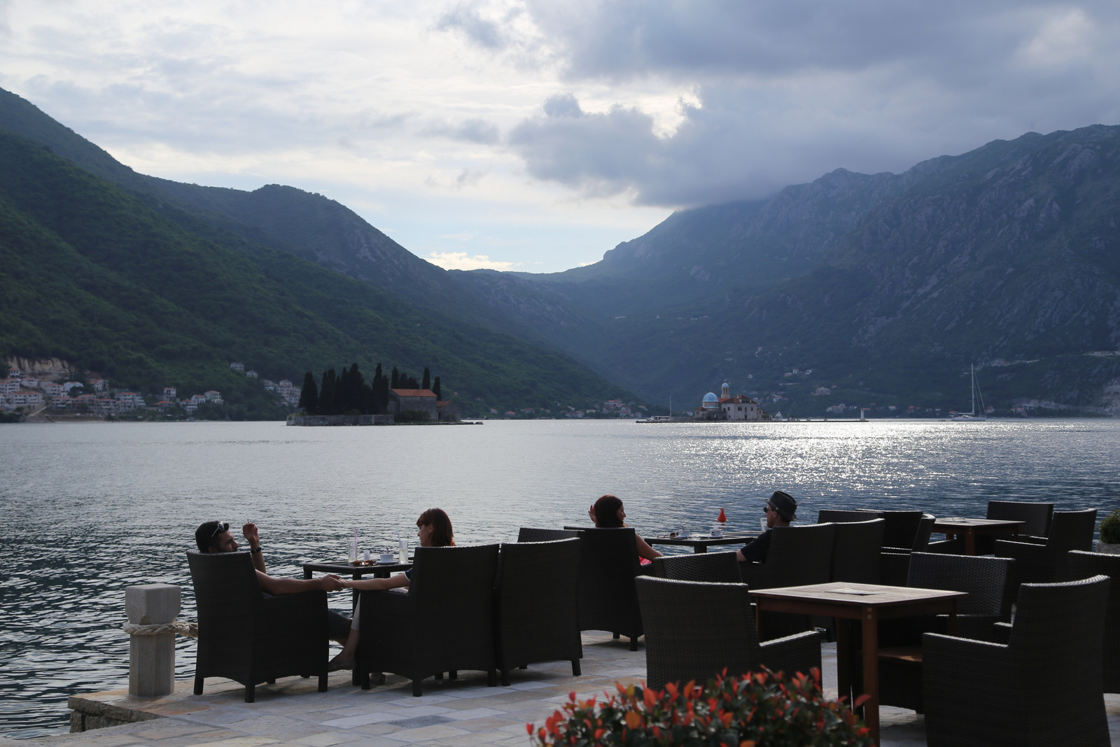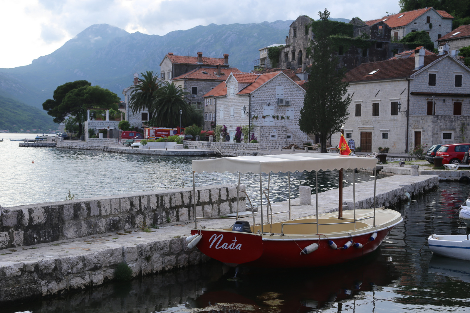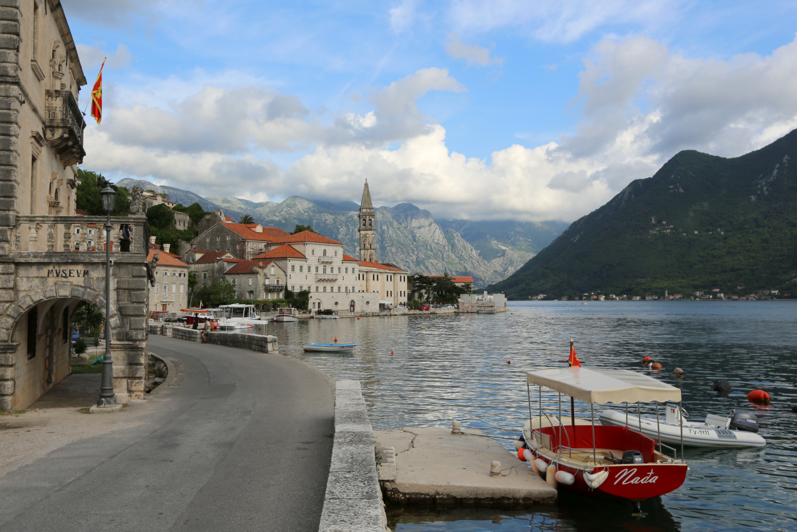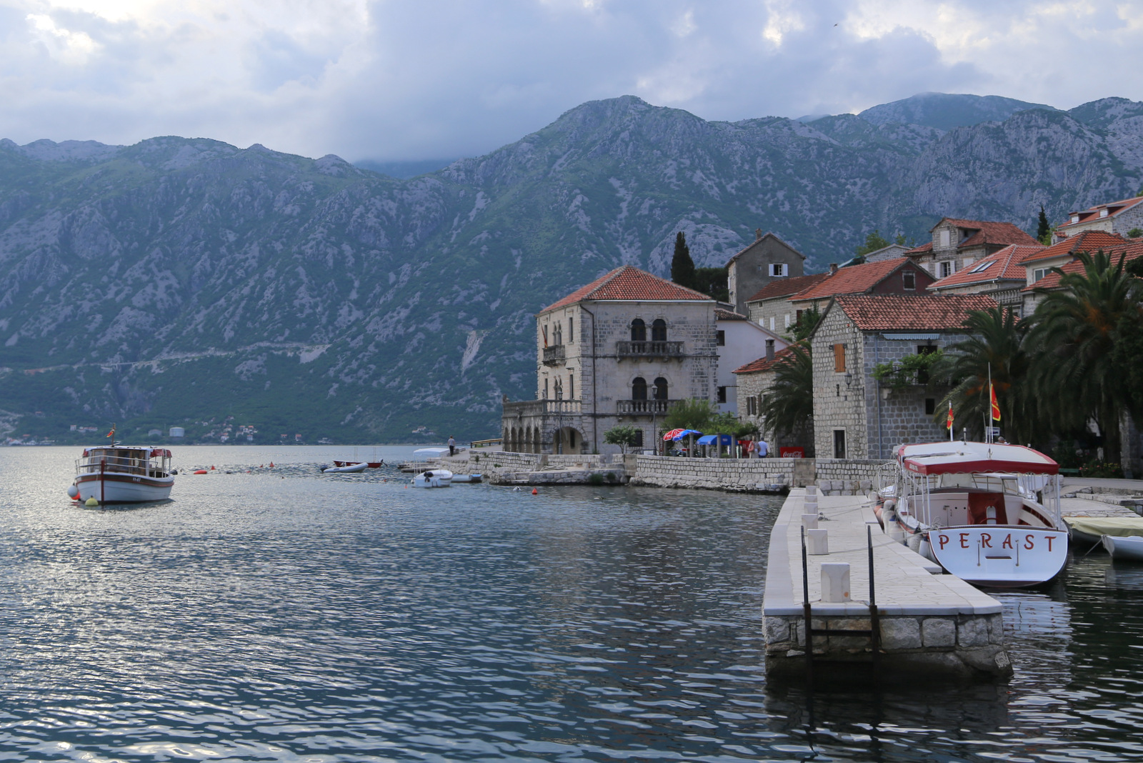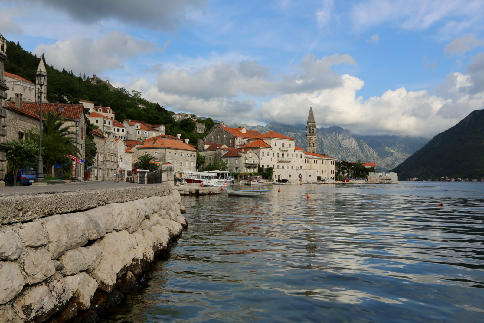 Perast – labai mielas ir jaukus nedidelis miestukas. Viena ilga gatvė pačioje įlankos pakrantėje, pora mažų gatvelių už jos, ir daugybė laiptukų, vedančių stačiais kalno šlaitais aukštyn, į nuo turistų akių pasislėpusią miestelio dalį. Turistų labai nedaug – jau vakaras, visi išsivažinėjo kas sau. Vietiniai kas kelis žingsnius siūlo „taksi“ į netoliese įlankoje esančią salą su vieniša koplytėle, bet mus apėmęs lengvas tingulys, be to, jau vėsu, ir beveik temsta – tiek to. Verčiau pasivaikštom pakrante ir pasigėrim vakaro ramybe apsigaubusia įlanka.