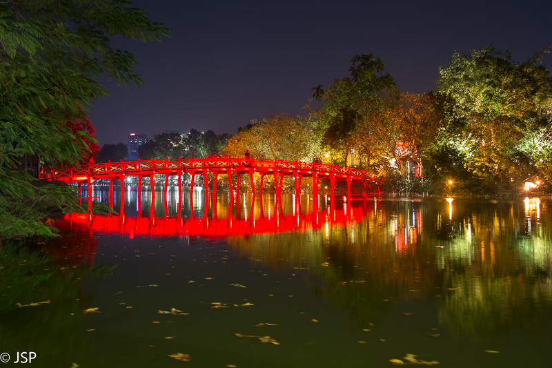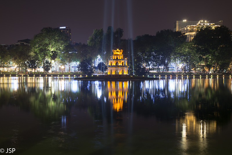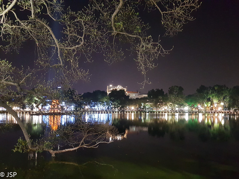 Likusias popietės valandas praleidžiame jaukiame viešbučio sode, o temstant vėl išsiruošiame į Hanojų. Pasivaikščiodami apeiname Hoan Kiem ežerą. Pakrantėje, kaip ir aną vakarą, pilna žmonių šurmulio, iš tolo šviečia ryškiai raudonas į šventyklos salą vedantis tiltelis, ramiame vandenyje atsispindi mažutėje salelėje stovintis Vėžlio bokštas ir miesto žiburiai kitame krante.