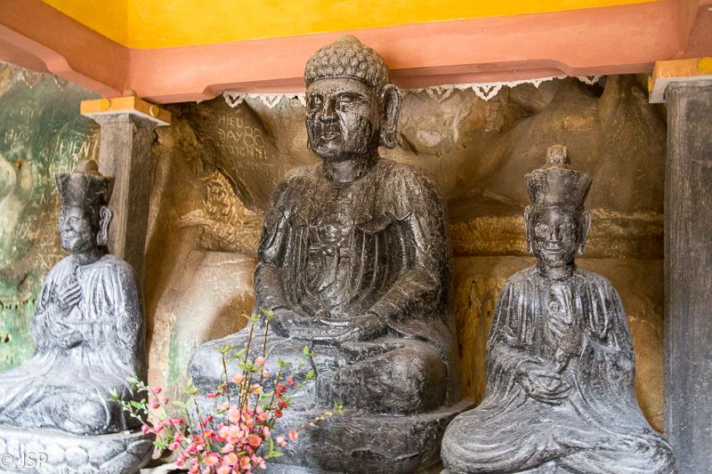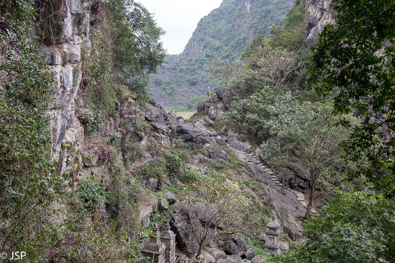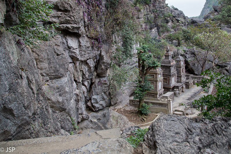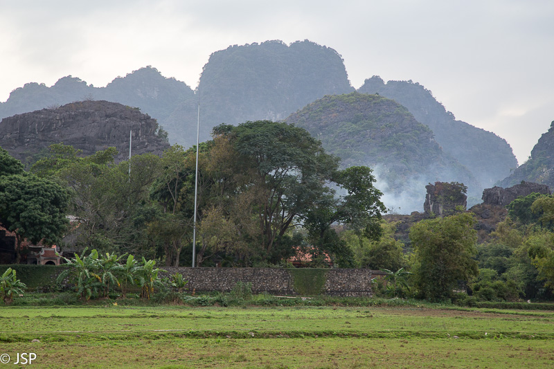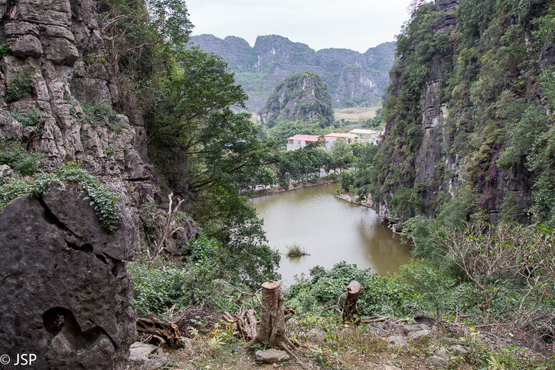 Kitas rytas išaušta lietingas ir ūkanotas. Viešbučio sodo takai drėgni – naktį lijo. Dangus žemas ir pilkas. Devintą valandą atvažiuoja mūsų gidas – laikas pradėti kelionę į Ninh Binh. Važiuojame ilgai, oras nesitaiso, artėjant prie Ninh Binh dar ir lynoti pradeda. Pagaliau pasiekiame Tam Coc miestelį. Jo pakraštyje – Bich Dong šventykla. Iš tiesų tai yra kelių šventyklų kompleksas, jos pastatytos ant kalno šlaito įvairiame aukštyje. Pamažu kopiame aukštyn, pakeliui aplankydami visas šventyklas. Nuo kalno viršūnės gražią dieną turėtų atsiverti puikus vaizdas į apylinkes. Šiandien, deja, labai apniukę, matomumas prastas, tai iki paties viršaus net nelipame – nėra prasmės. Jau vėliau sužinojome, kad visai netoli yra kita šventykla, nuo kurios atsiveria daug įspūdingesni vaizdai, net ir tokią miglotą apniukusią dieną kaip šiandien. Dar kartą įsitikiname, kad neplanuoti paskutinės minutės turai ne visada yra gerai, nes pamatai tai, ką tau siūlo agentūra, o ne tai, ką pats būtum norėjęs pamatyti.