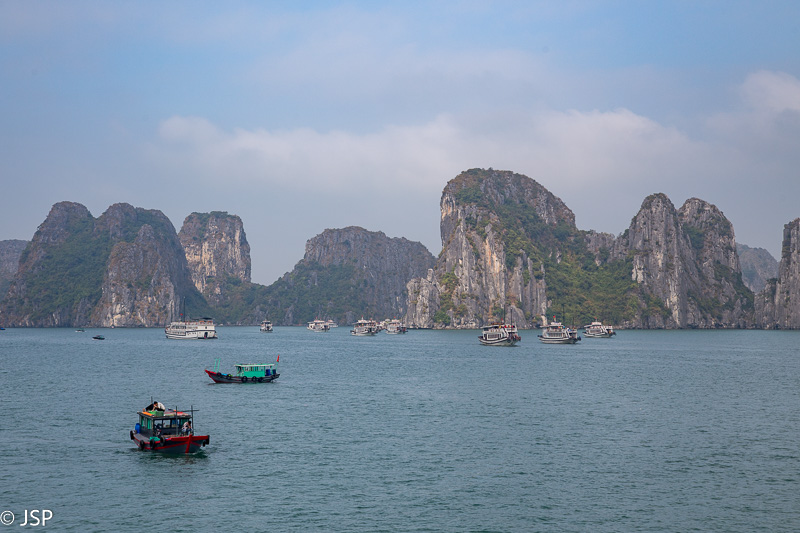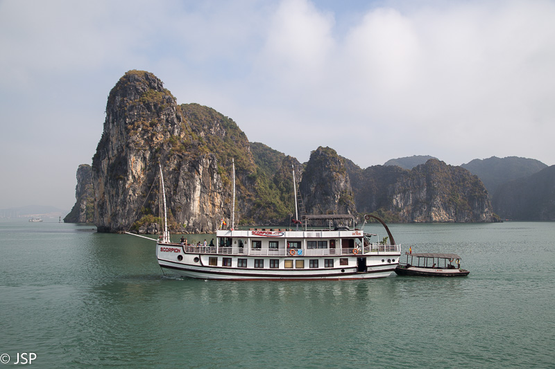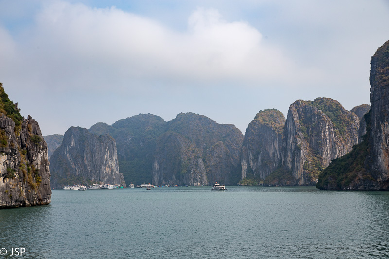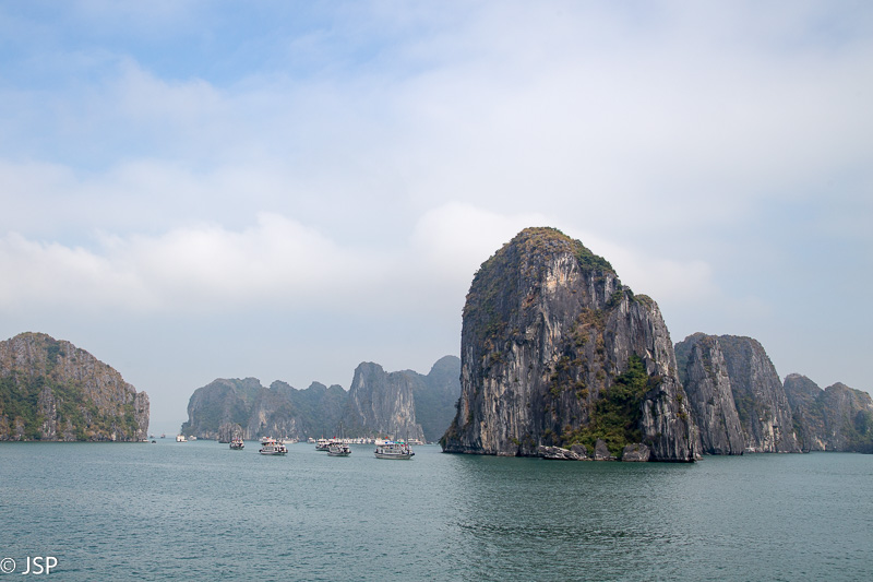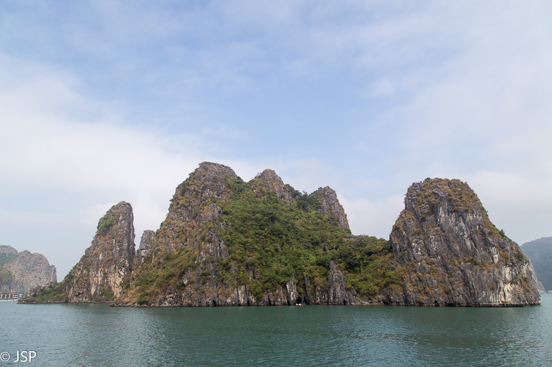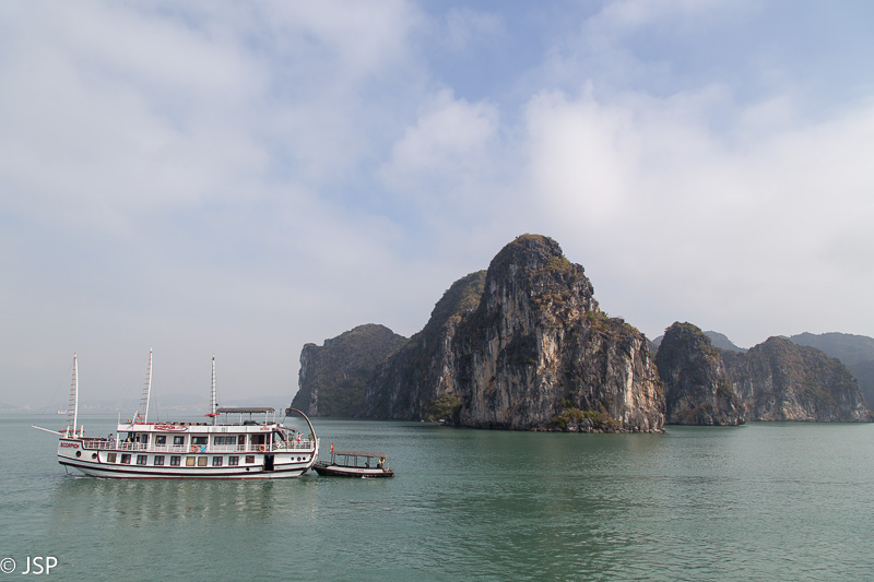 Grįžę į laivą, gauname sočius antruosius pusryčius, o laivas tuo metu kelia inkarą ir suka atgal link Tuan Chau uosto. Likus gal pusvalandžiui iki kruizo pabaigos, oras staiga pasitaiso – pro debesis išlenda saulė, rūkas išsisklaido, matomumas smarkiai pagerėja, temperatūra pakyla gal dešimčia laipsnių, net prireikia akinių nuo saulės ir kepurės galvai pridengti. Stovime viršutiniame denyje, grožimės saulėje švytinčia smaragdine įlanka, fotografuojame, džiaugiamės, kad nors pabaigoje teko pamatyti visą šios vietos grožį, o aš vis pagaunu save galvojant – na kodėl nesuplanavau kelionės į įlanką viena diena vėliau?? Šįryt ir apžvalginis turas lėktuvu būtų pavykęs, ir baidarėmis būtume paplaukioję po saulės nušviestą vandenį. Bet, kaip sako patarlė, jei iš anksto žinotum, kur nugriūsi, tai ir pagalvę pasidėtum…