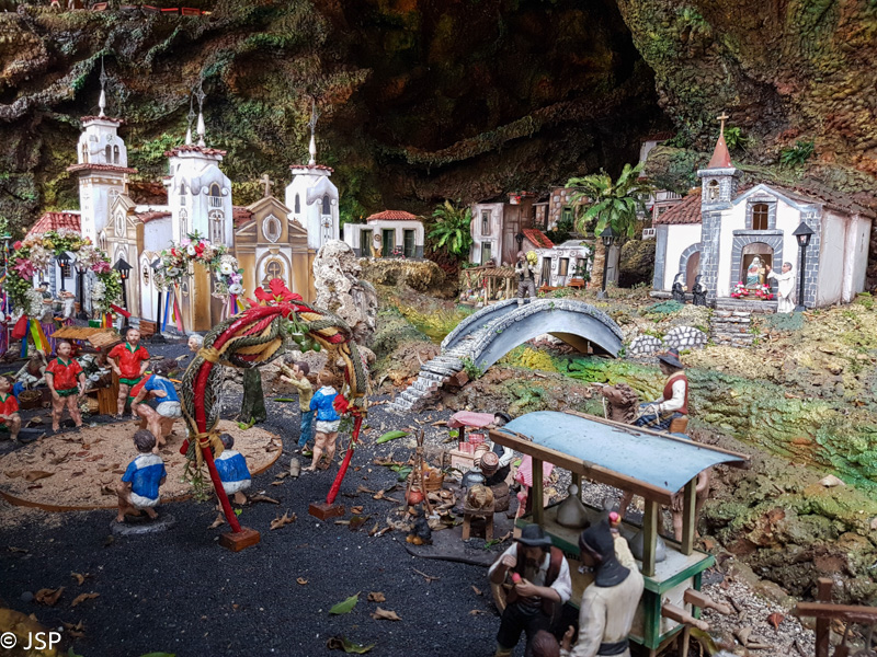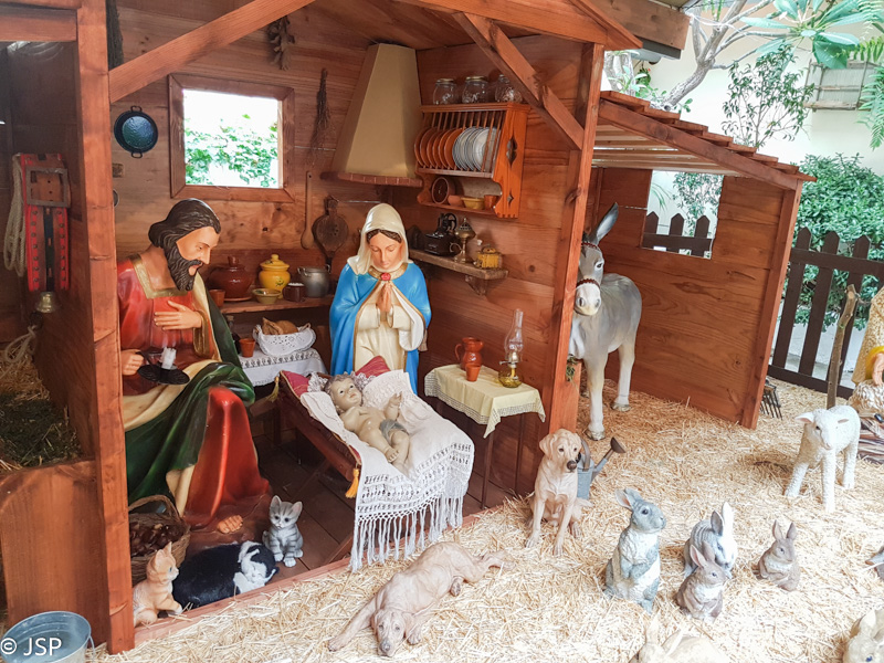 Kitame senamiesčio gale – tradicinė Betliejaus instaliacija, Belem. Didžiulė, su daugybe įvairiausių scenų, kruopščiai sudėliota didžiulio medžio pavėsyje.