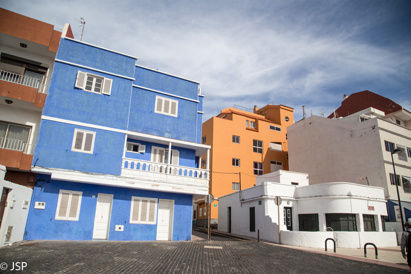 Pasivaikščioję po Orotavą ir papietavę pustuštėje kavinukėje kiek toliau nuo žmonių pilno centro, svarstome, ką veikti toliau. Labai norisi kalnų žygio, bet salos viduriu vingiuojanti kalnų grandinė nugulta tirštų debesų. Nusprendžiame visgi surizikuoti ir serpantinų keliu per miškus kylame aukštyn, ketindami pasiekti La Montaneta kaimelį, kur prasideda trasa į juoduosius smėlynus – Arenas Negras. Šią vietą labai norėjau pamatyti. Bet kuo aukščiau kylame, tuo labiau tirštėja rūkas. Kai pasiekiame visai netoli nuo La Montaneta esantį San Jose de Los Llanos kaimą, rūko sienos jau supa mus iš visų pusių, krenta lengva dulksna, šalta, matomumas beveik nulinis. Į žygį eiti tokiomis sąlygomis nėra prasmės. Kiek nusivylę sukame į vakarus ir važiuojame link Los Gigantes. Pamažu leidžiamės žemyn link vakarinės pakrantės, rūkas sklaidosi, tolumoje jau matosi žydro dangaus lopinėliai, o po kurio laiko išlendame į visai kitokią dieną – giedrą ir šiltą. Tenerifė man labiausiai ir patiko tuo, kad čia visada (na gal beveik visada) gali rasti gerą orą – tereikia tik pavažiuoti kiek toliau į pietus. Išlipus iš mašinos Los Gigantes miestelyje, į veidą tvoskia šilto oro banga. Nieko sau kontrastas po šaltame rūke paskendusio San Jose de Los Llanos! Saulės nutviekstomis stačiomis gatvelėmis tarp žydinčių bugenvilijų kaskadų leidžiamės į pakrantę. Čia jau ta „tradicinė“ Tenerifė, pilna pliažo atostogoms atvykusių žmonių – mes jaučiamės kiek keistai su savo apranga, labiau tinkama kalnų žygiams nei poilsiui prie jūros. Nedidelis pliažas pilnas žmonių ir šurmulio.