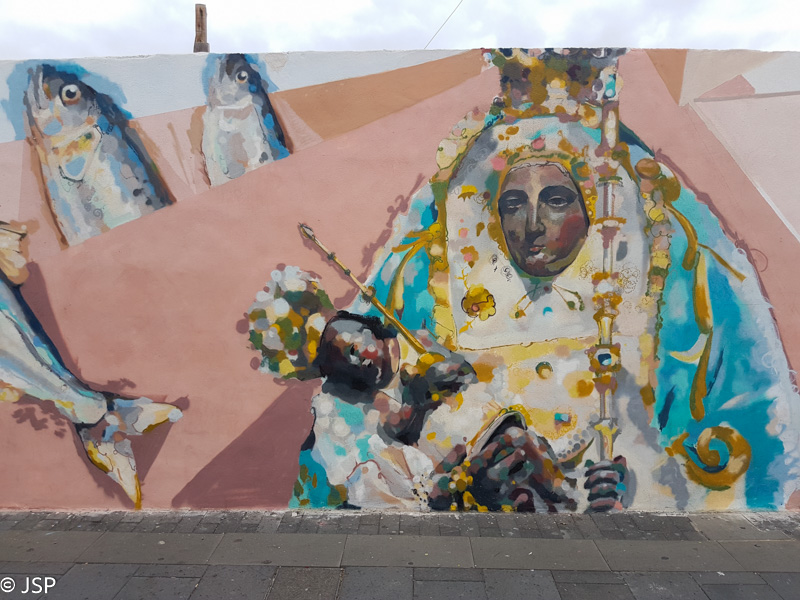 Namo važiuoti dar nesinori, tad pakeliui užsukame į Candelaria. Tai dar vienas tipiškas Tenerifės pakrantės miestelis – ispaniška architektūra, balti namukai, ir gana meniški grafiti ant sienų. Aikštėje prie jūros – didžiulė bazilika, kurioje saugoma medinė Kanarų salų globėjos, šventosios Kandeliarijos mergelės Marijos, statula.