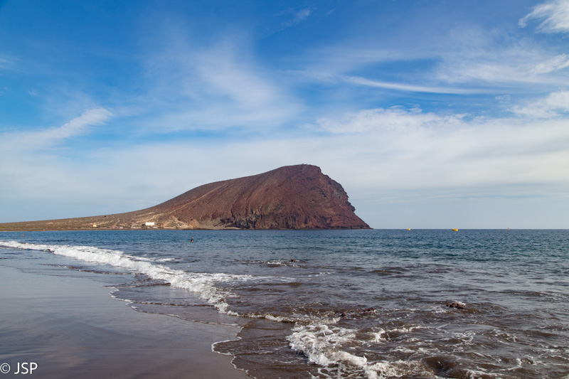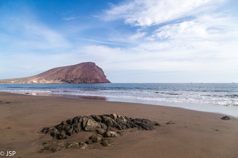 Šeštadienis. Rytas ir vėl apniukęs, kalnus ir vėl nugulę debesys, ir vėl tenka važiuoti į pietus saulės ieškoti. (Didelio vargo tai nesukelia – iki pietinių kurortų mažiau nei valanda kelio. Dar vienas Tenerifės privalumas – viskas čia ranka pasiekiama, ypač jei turi mašiną.) Jau gerokai įdienojus vėl sukame į El Medano miestelį, kur buvome sustoję pirmąją atostogų dieną, vos atvykę į Tenerifę. Skirtumas akivaizdus – dabar šventinė savaitė ir dar šeštadienis, tad žmonių keliskart daugiau, pliažas pilnas, o ir kavinėje vos randame laisvą staliuką. Pavalgę einame į trasą – ketiname apeiti įlankos gale stūksantį raudonos spalvos kalną, Montana Roja. Tačiau beeidami persigalvojame – diena labai šilta, vyras jaučiasi pavargęs, aš irgi aptingusi, tad aplink kalną neiname, o pasukame į dešinę ir smėlėtu taku pasiekiame Tejita pliažą. Ne pirmą kartą įsitikinu, kaip lengva pabėgti nuo poilsiautojų minios – užtenka paėjėti porą kilometrų, ir še tau, puikus ir beveik tuščias pliažas! Nusiauname batus ir neskubėdami šlepsime pakrante (vanduo vėsokas, bet pabraidžiojimui pats tas), kol atsiremiame į uolas, ten trumpam prisėdame ir vėl grįžtame atgal. Dabar eiti dar smagiau, nes akis džiugina Montana Roja. Dar pasvarstau, kad gal visgi reikėtų ant jo užsilipti, bet ir vėl apsigalvoju – lipti šiandien tingisi, o ir nieko ypatingo nepamatysiu, sala šioje pusėje nepasižymi gražiais peizažais.