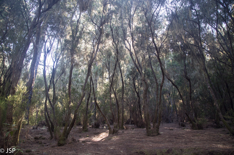 Sekmadienis. Paskutinė atostogų Tenerifėje diena – ir paskutinė 2017-ųjų metų. Oras pagerėjo, lyg ir būtų galima eiti į kalnų žygį, bet niekaip neišsirenkame, į kurią pusę patraukti. Galiausiai nusprendžiame aplankyti Orotava slėnį – juk dar beveik nebuvome gražiuosiuose Tenerifės pušynuose. Šiaurine pakrante važiuojame link Orotavos ir gėrimės dangų užstojančiu Teidės vaizdu. Išsukę iš greitkelio, siauru ir vingiuotu, bet labai vaizdingu keliu pasiekiame Aguamansa miestelį, pasistatome mašiną jo pakraštyje ir per tankų mišką kylame aukštyn link La Caldera kraterio. Krateris labai senas, jo šlaitai apaugę tankiu mišku, o apačioje įrengta vaikų žaidimo aikštelė. Sėdint prie medinio pikniko staliuko kiek aukščiau ant šlaito, atrodo lyg būtum pačios gamtos sukurtame amfiteatre.