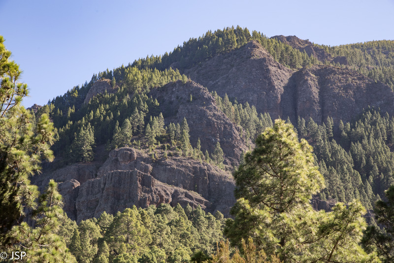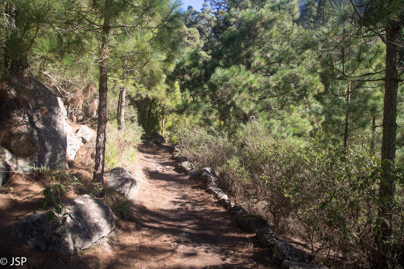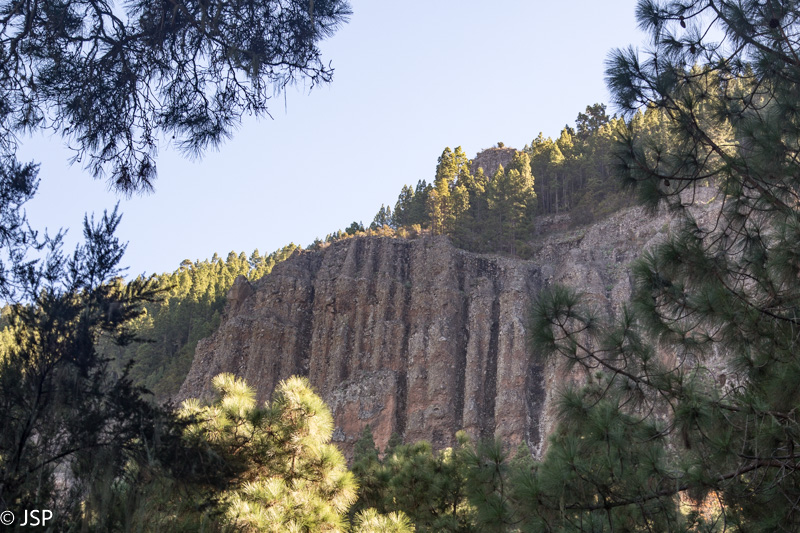 Mūsų trasa veda dar aukščiau, bet vyras staiga pasijunta labai pavargęs (prie jo dabartinės sveikatos būklės šios atostogos ir taip gavosi kiek per daug intensyvios), tad keičiame planus ir maps.me pagalba nusižymime žemyn vedančią trasą. Pirmiausia užsukę pasistiprinti į šalią esančią kavinukę, saulės nutviekstu taku per pušynus tiesiai per aplinkui neskubėdami leidžiamės atgal į Aguamansa. Miško properšose stūkso didžiulės granito uolos, savo forma primenančios vargonus. Jos taip ir vadinasi – Los Organos.