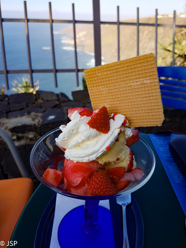 Nuo Mirador akmeniniai laiptukai veda žemyn, o ten nedidelėje terasoje įsikūrusi kavinukė, kurioje prekiaujama itališkais ledais. Taip ir pabaigiame paskutinę popietę Tenerifėje – su ledų porcija ir svaigiais pakrantės vaizdais.