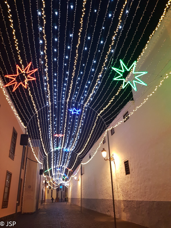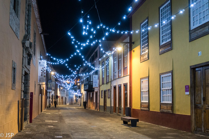 Vakarieniaujame namie – jau iš patirties žinome, kad paskutinį metų vakarą retai kuris restoranas dirbs. Vėlai vakare išeiname pasivaikščioti po La Laguna senamiestį. Jis beveik tuščias, nei ženklo tos šurmuliuojančios minios, kuri užpildydavo miesto gatves kiekvieną vakarą, kol čia buvome. Matyt dauguma vietinių Naujuosius sutinka namie? Dauguma kavinių, barų ir restoranų uždaryti, o pora dirbančių kavinių perpildytos, eilės prie baro net į gatvę nusitęsusios. Prie bažnyčios vyksta pasiruošimas naujametiniam koncertui – jau beveik dešimta vakaro, o darbų dar tiek, kad net paspėliojame, ar spės jie viską laiku pabaigti.