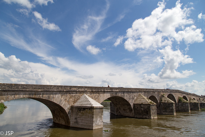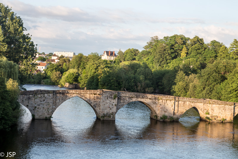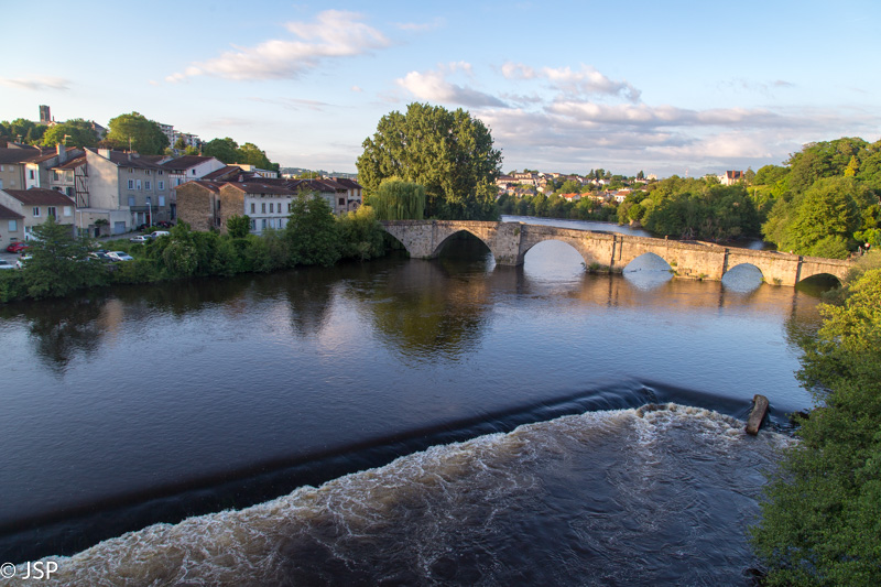 Pavakarieniavę einame pasivaikščioti iki upės – Limožo mums dar negana. Dar viduramžiais pastatytu akmeniniu arkiniu tiltu pereiname į kitą pusę ir kiek paėję paupiu jau kitu tiltu vėl kertame upę ir grįžtame atgal. Senasis tiltas nuo čia matosi visu gražumu.