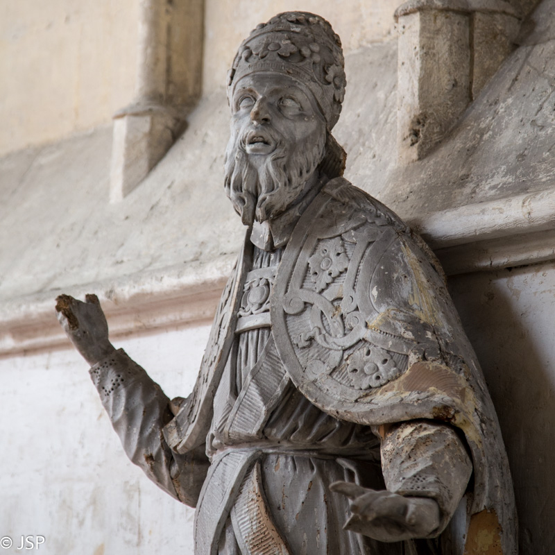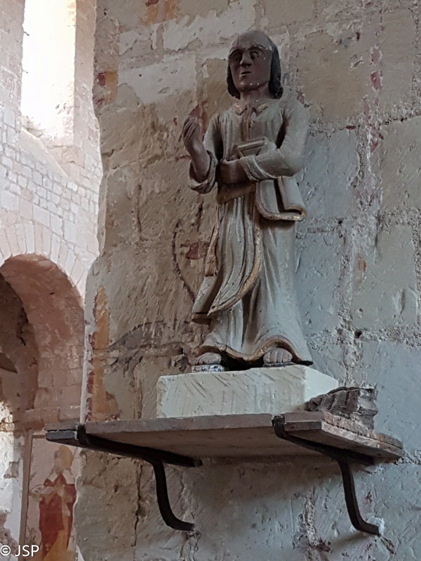 Bažnyčia atrakinta bet tuščia, kaip ir kaimelio gatvės. Sienas dengia primityvistinio stiliaus freskos, nuo akmeninės kolonos į mus žvelgia rūstaus veido šventasis.
