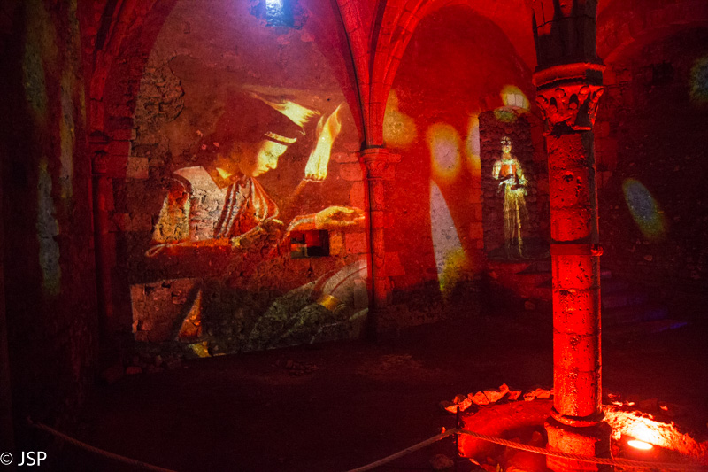 Paskutinis viešnagės akcentas – pilies požemiuose vykstantis vaizdo šou, automatiškai prasidedantis kam nors įėjus į tolimiausią požemio salę. Ant sienų vienas kitą keičia spalvingos viduramžių scenos, o dramatiškas balsas tuo tarpu pasakoja pilies istoriją. Deja, tik prancūziškai, bet vis tiek labai įspūdinga.