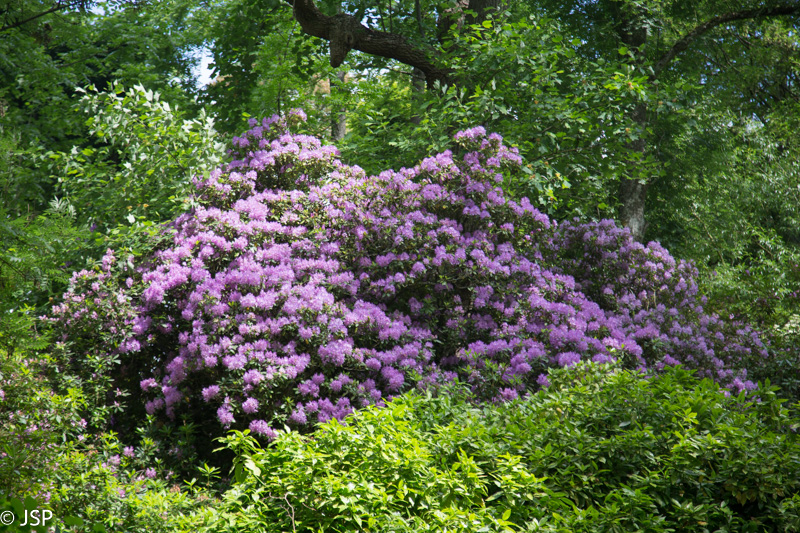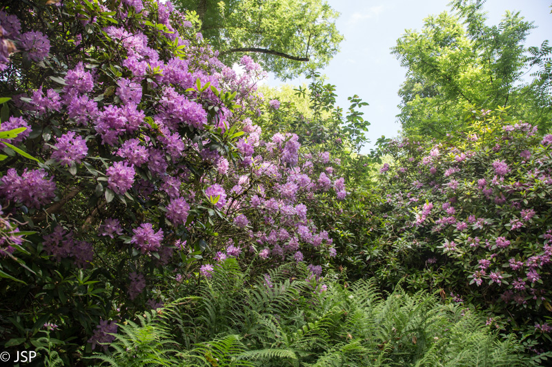 Netrukus prieiname posūkį į šalia upės esantį parką. Jo pakraštyje stovinti informacinė lenta reklamuoja parke augančius rododendrus. Einame nurodyta kryptimi ir netrukus aptinkame ištisą rododendrų mišką. Jų žydėjimas jau į pabaigą, takeliai nukloti žiedlapiais, jie siauručiai, beveik kaip tuneliai, o iš abiejų pusių mus supa žydinčių rododendrų sienos.
