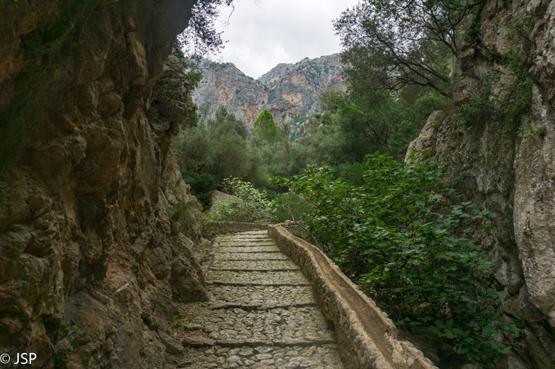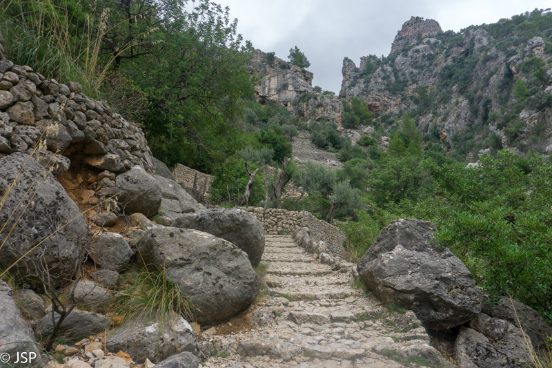 Praėję Binibasi, netrukus pasiekiame Biniaraix tarpeklio pradžią ir akmenimis grįstu laiptų taku palengva imame kilti aukštyn.