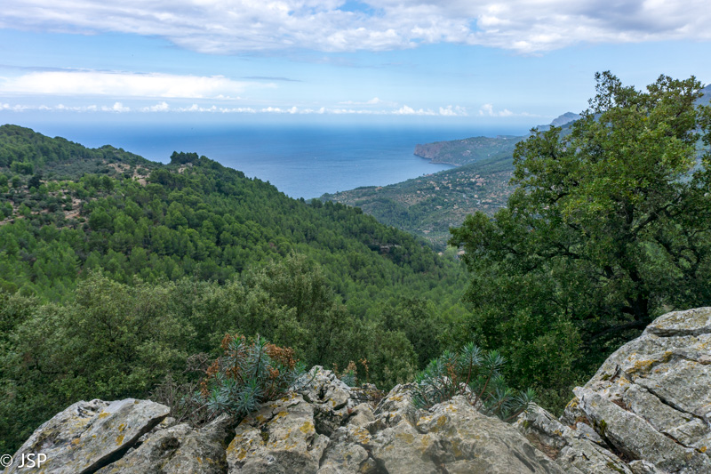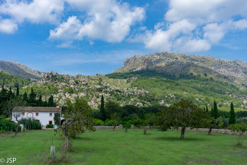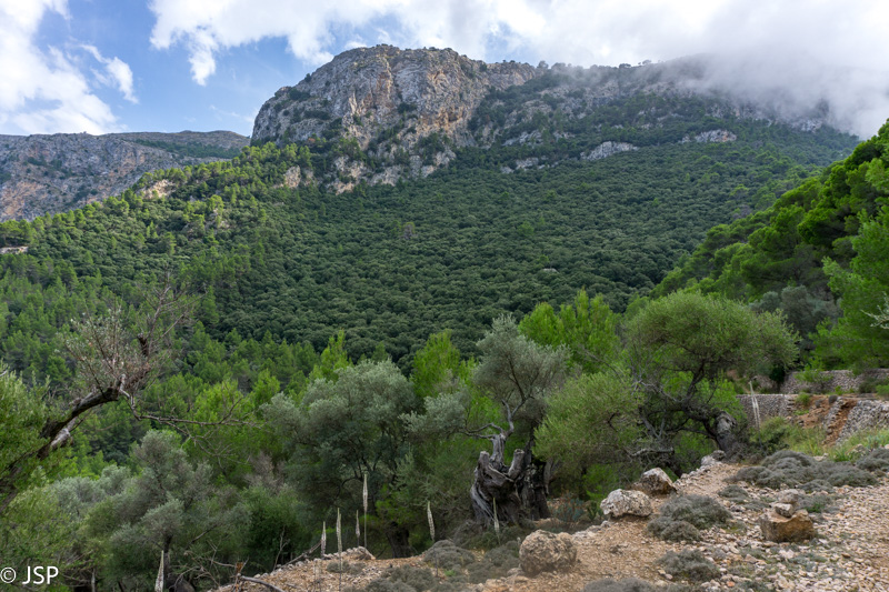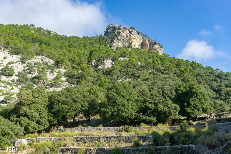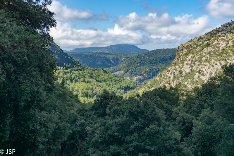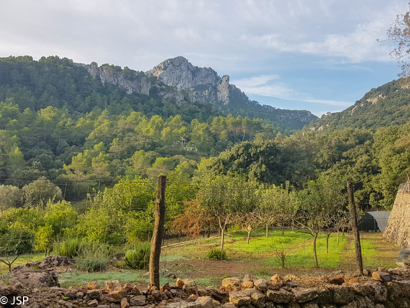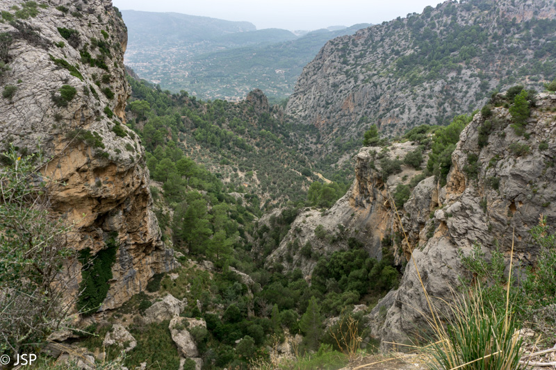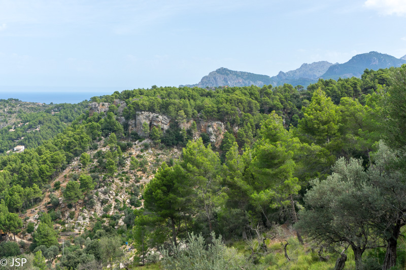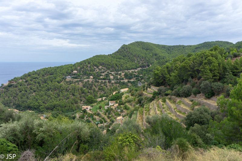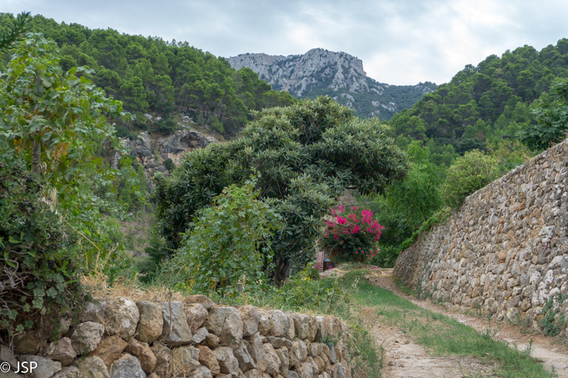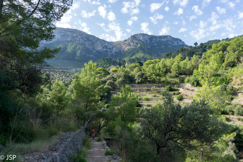Mūsų takas veda žemyn į žalią slėnį, aplink stūkso mišku apaugę kalnai, dangus mėlynas, išmargintas baltų debesėlių, rytas saulėtas ir šiltas. Atsigręžus tarp kalnų vis dar matosi Deia. Take sutiktas vyriškis papasakoja, kad nuo pakrantės matosi tik kalnai, o miestelio atrodo lyg nebūtų, nes jis specialiai buvo statomas taip, kad nesimatytų nuo pakrantės ir netaptų pagunda dažnai salą puldinėjusiems piratams.