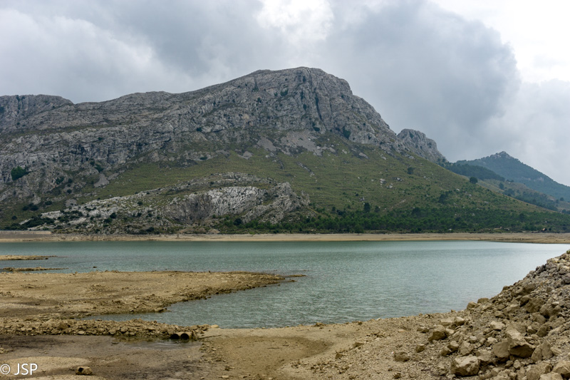 Kai ežeras pasibaigia, takas vingiuoja toliau per aukštos žolės kupstais apaugusią lygumą. Netrukus prieiname takų sankryžą šalia nemažos parkingo aikštelės. Čia galima atvažiuoti automobiliu, norint pasivaikščioti iki Cuber ar Gorg Blau rezervuarų, arba autobusu, jei norėtumėte nakvoti Tossals Verds kalnų trobelėje ir toliau tęsti Sauso akmens trasą link Lluc.