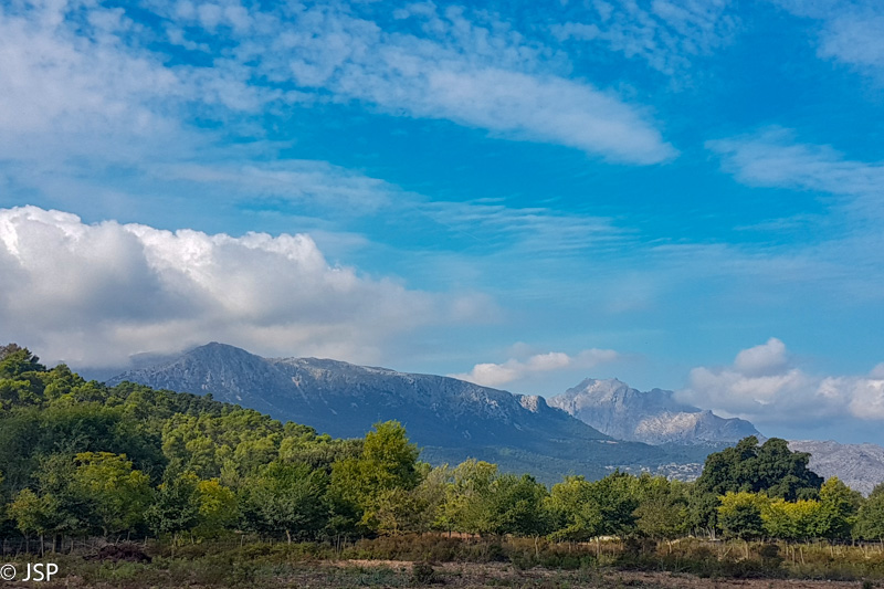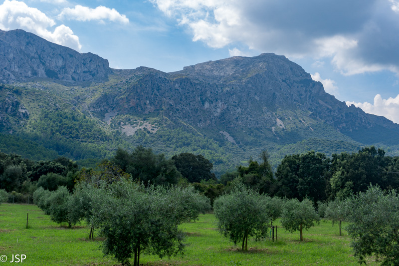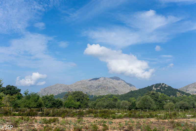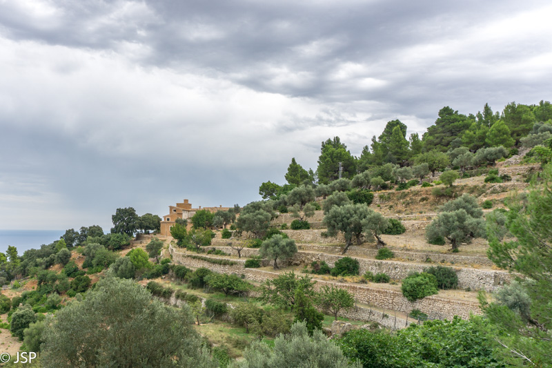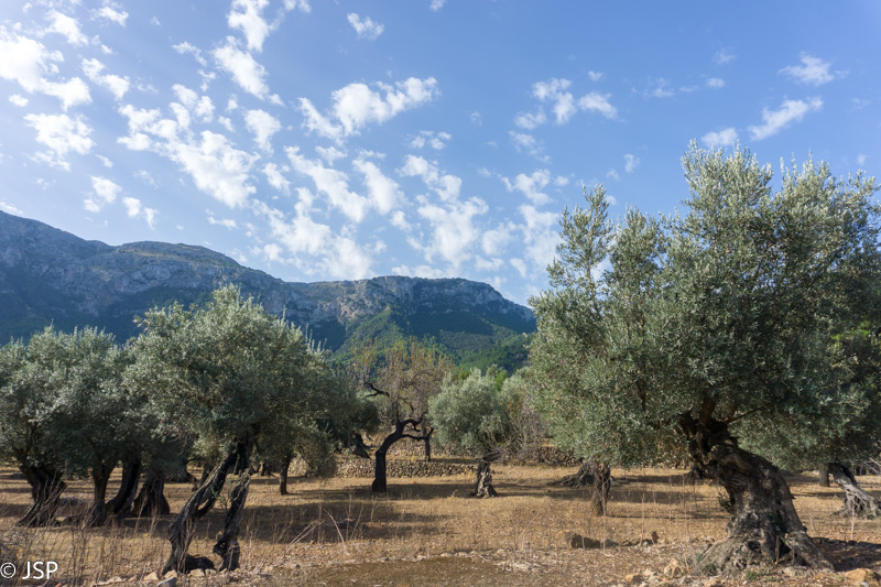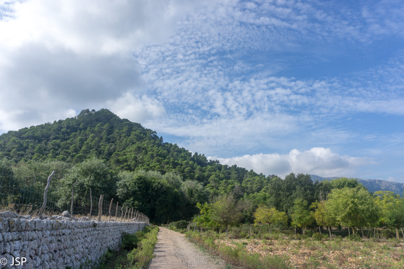 Oras vėl subjūra, dangų užtraukia debesys. Bijojome, kad Maljorkoje nebūtų per karšta, bet kol kas yra atvirkščiai – reikalus gadina debesys, o kartais ir lietus. Ilgai einame dulkėtu keliu pro alyvmedžių giraites, virš galvos – žemas pilkas dangus, aplink tokie pat pilki alyvmedžiai. Kalnai turbūt būtų labai gražūs saulėtą dieną, bet šiandien ir jie atrodo pilki.