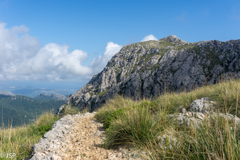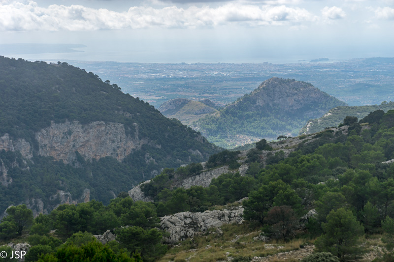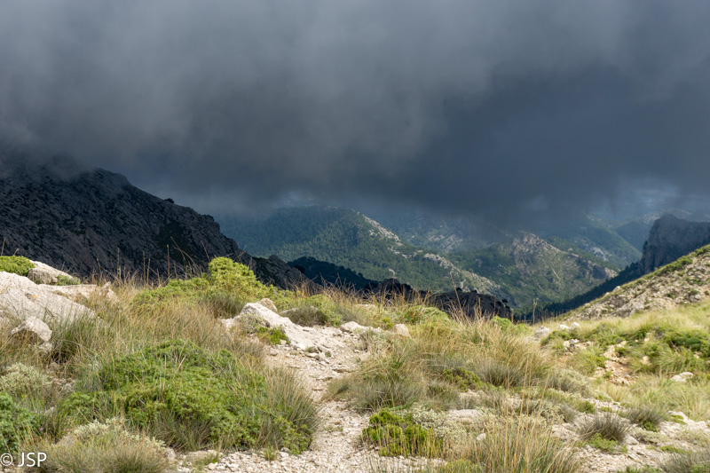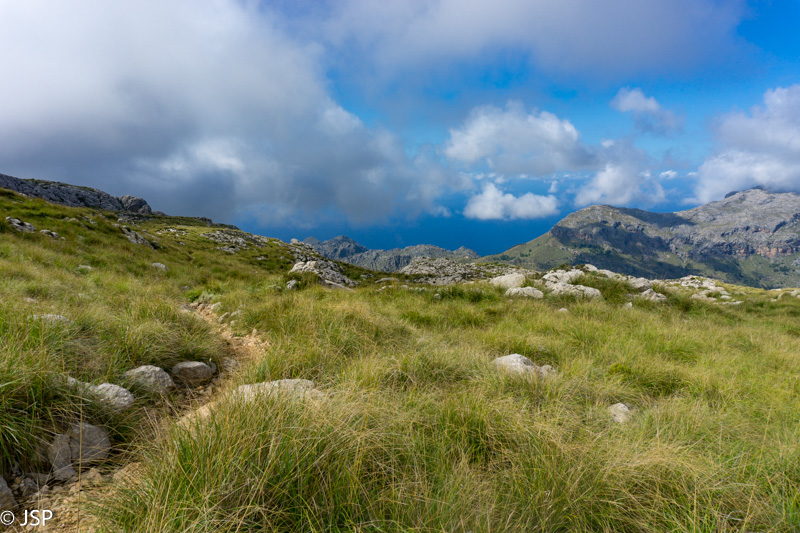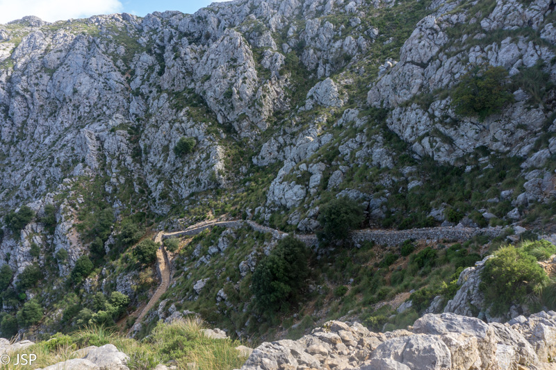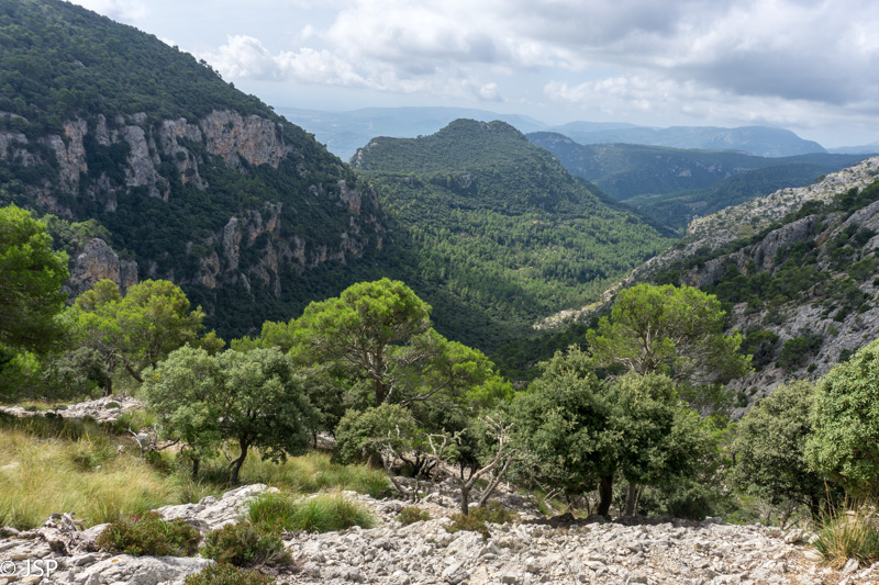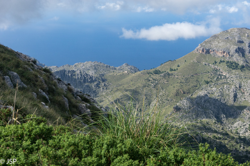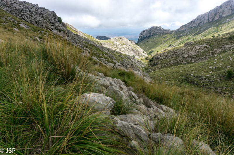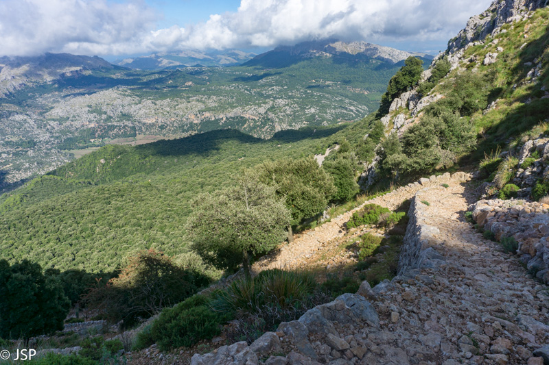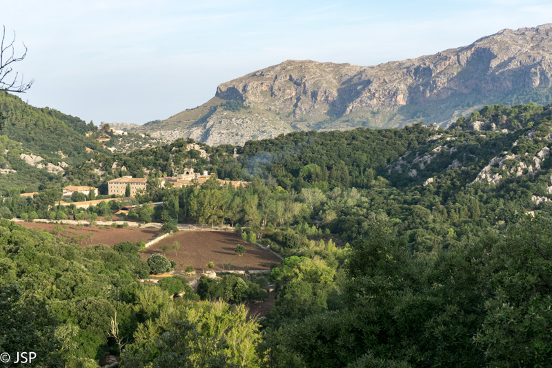 Gerokai pavingiavęs per kalnų pievą, takas pagaliau atskleidžia vaizdą į slėnį apačioje. Mūsų laukia status serpantinų nusileidimas nuo aukšto kalno, o ten toli ir žemai, žaliame slėnyje – Lluc vienuolynas, kurio viešbutyje šiąnakt nakvosime.