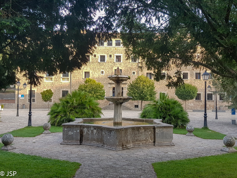 Šeštą vakaro pagaliau pasiekiame Lluc miestelio ribą. Dar šiek tiek – ir jau einame vienuolyno sodo alėja link įėjimo. Didžiulis pilkas pastatas primena kareivines, bet viduje gana jauku. Registratūroje išgirstame, kad mūsų rezervacija kažkur dingusi – trumpam sunerimstame, bet laisvų kambarių dar yra, ir netrukus jau gauname raktą. Kambarys – buvusi vienuolyno celė (gana didelė, gal visai grupei vienuolių skirta?), grotuotas langas žvelgia į uždarą kiemelį, apaugusį didžiuliais kaštonais. Mes ištikimos savo tradicijai – pasidėjusios daiktus pirmiausiai einame gerti alaus (kieme yra baras, jis jau beveik užsidarinėja, bet alaus užsisakyti dar spėjame), tada prausiamės, tvarkomės ir einame vakarieniauti. Vakarienei renkamės viešbučio restoraną, nes eiti į miestelį ir kažko ieškoti jau neturime jėgų. Vakarienė skani, aplink daug pažįstamų veidų, visi šypsosi ir linkčioja vieni kitiems. Nors šiame žygyje beveik nenakvojome trobelėse, bet kasdien matant tuos pačius veidus trasoje, pamažu tie bendrakeleiviai-anonimai tampa lyg ir pažįstamais, net jei ir nepersimetei su jais nei vienu žodžiu.