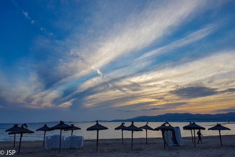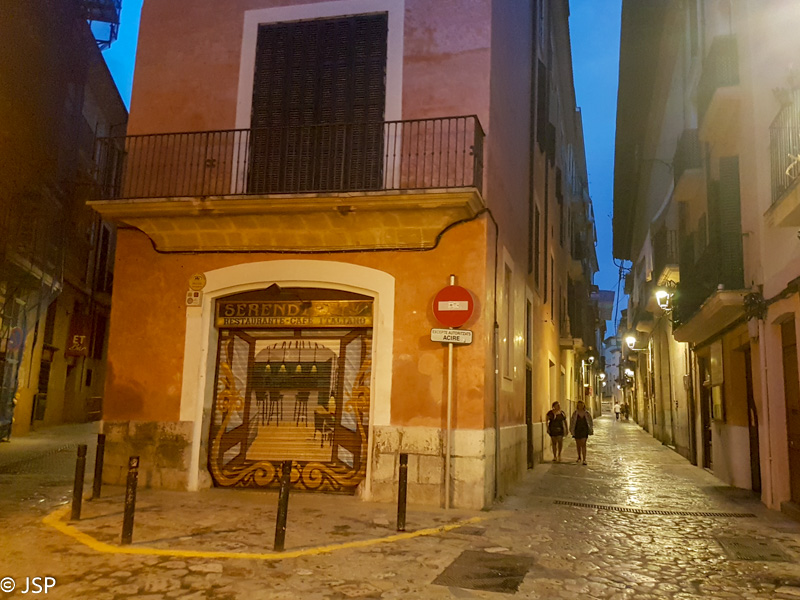 Pagaliau ateina kelionės į Maljorką diena. Transavia avialinijų lėktuvas per pustrečios valandos atskraidina mane iš Amsterdamo į Palmos oro uostą, po valandos iš Vilniaus atskrenda ir bičiulė, susitinkam prie išėjimo ir einam ieškoti autobuso į miesto centrą. Palmoje šilta, bet apsiniaukę, krapnoja lietus. Mūsų viešbutukas netoli stoties, kambarys kuklus, bet švarus ir tvarkingas, tik tvanku labai, naktį teks miegoti su atviru langu, nepaisant iš gatvės sklindančio triukšmo. Kol susiruošiam eiti į miestą vakarienės, pradeda lyti kaip reikiant, o mes net skėčio neturime (žygyje jis nereikalingas, o kad mieste gali reikėti, net į galvą neatėjo, labiau nerimavom dėl karščio), tenka skolintis iš šeimininkės. Pasivaikštome po miestą, užsukam į du tapas barus – pirmajame tapos labai skanios, antrajame labai šiaip sau. Po vakarienės dar šiek tiek pasivaikštom ir grįžtam į viešbutį. Ryt laukia pirmoji žygio diena, jaučiu lengvą jaudulį – kaip eisis, kaip seksis, koks oras bus…. su tom mintim ir užmiegu.