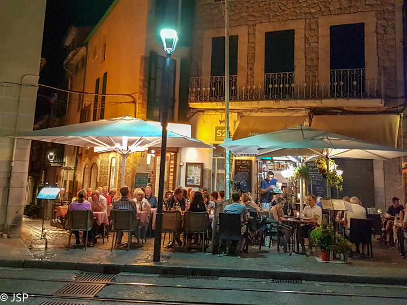 Mūsų viešbutis – pačiame Soller senamiestyje, jo kiemelyje yra kavinukė, tad po registracijos ten pirmiausia ir prisėdame. Bičiulė ima alaus, aš vėl skanauju vermut casero. Atsigaivinę grįžtam į kambarį, po dušu nusiplauti trasos dulkių, ir kiek pailsėję einame į Soller senamiestį ieškoti vakarienės. Vakarieniaujame itališkame restorane, staliukai stovi lauke prie gatvės, maistas skanus, vynas irgi, aplink verda gyvenimas, smagu jį stebėti. Po vakarienės dar apsukame ratą aplink senąjį miestą ir grįžtame į viešbutį miegoti. Rytoj laukia labai ilga diena.