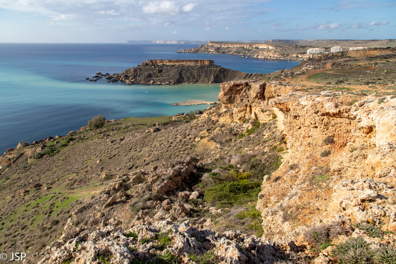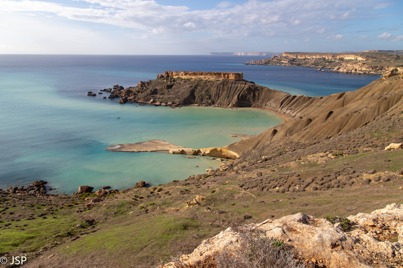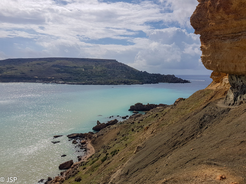 Iki uolų dar tenka palypėti siauru molingu taku ant iškyšulio keteros. Nuo tako veriasi puikūs vaizdai į Ghajn Tuffieha ir į dar vieną įlanką kitoje pusėje – Gnejna.