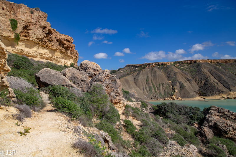 Takas aplink Il-Qarraba uolas labai smagus. Tai tikras žygio takas su kliūtimis, o ne šiaip pliažo takelis. Kartu ėjusios dvi moterys, apsiavusios pliažo basutėmis, netrukus pasuka atgal – joms per sudėtinga.