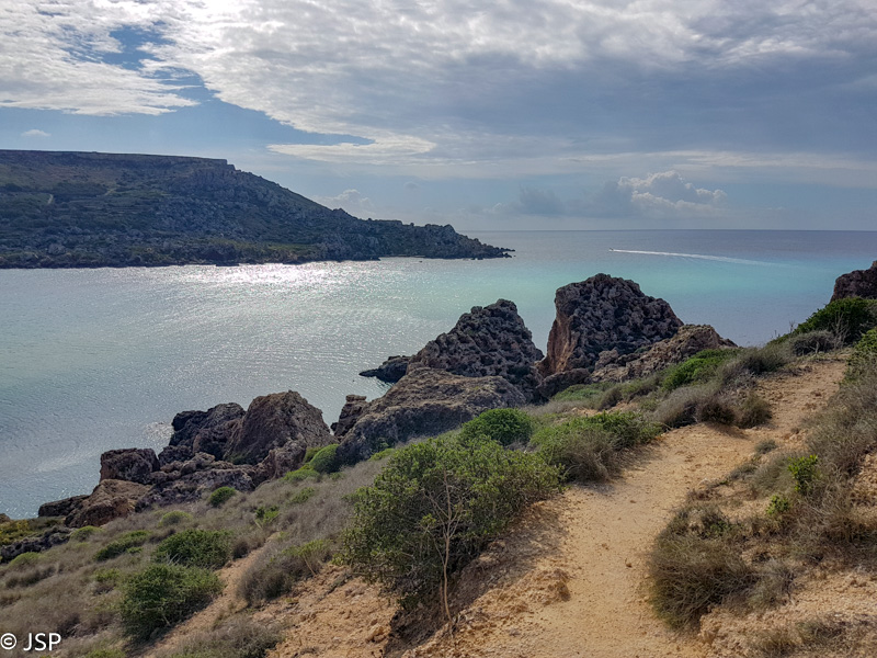 „Trijų įlankų trasa“, kaip aš ją pavadinau – vienas iš puikiausių mano kada nors praeitų pakrantės takų. Trasa žiedinė, bendras jos ilgis – apie 10 km, pakeliui praeinant tris nuostabaus grožio įlankas. Yra ir keli pliažai su galimybe išsimaudyti, ir tikras žygio takas, ir kelios kavinukės, kur galima pavalgyti ar išgerti puodelį kavos. Apie atsiveriančius stulbinančius vaizdus jau net nekalbu. Labai rekomenduoju šią trasą! Ir labai keista, kad prieš kelionę skaitinėdama, ką pamatyti ir nuveikti Maltoje, niekur neradau paminėtos galimybės pasivaikščioti virš trijų įlankų…