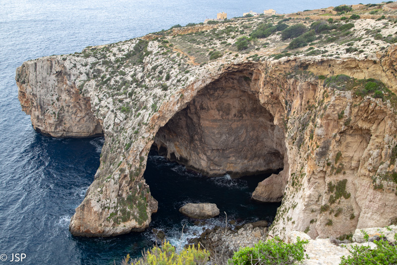 Blue Grotto apžvalgos aikštelė – visai šalia kelio, vos pora minučių žemyn akmeniniais laiptukais. Grotas labai gražus, bet ilgiau nei dešimt minučių čia nėra ką veikti. Giedrą dieną verta plaukti iki groto laiveliu, bet tokį pilką rytą kaip šis tai būtų tik pinigų ir laiko švaistymas, tad pasitenkiname vaizdu nuo viršaus ir judame toliau.
