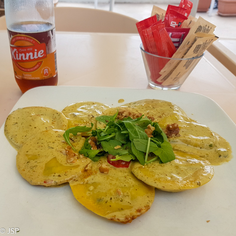 Gnejna pliažo kioskelyje nusiperkam paragauti tradicinio Maltos gėrimo – Kinnie (visai skanus, nors ir su kiek neįprastu kartoku prieskoniu), o paskui neatsilaikom pagundai pasidalinti didžiulį cannolo. Labai skanu!