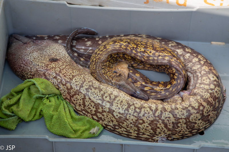 Žuvies turguje vyksta aktyvi prekyba. Pasirinkimas didelis, tiek žuvų, tiek jūros gėrybių, viskas atrodo šviežia, bet reikia atidžiai žūrėti po kojomis, nes žuvis valoma čia pat. Mano akis užkliūva už baisokai atrodančio ilgo storo žuvėko. Vėliau sužinojau, kad tai murena (angl. moray eel).