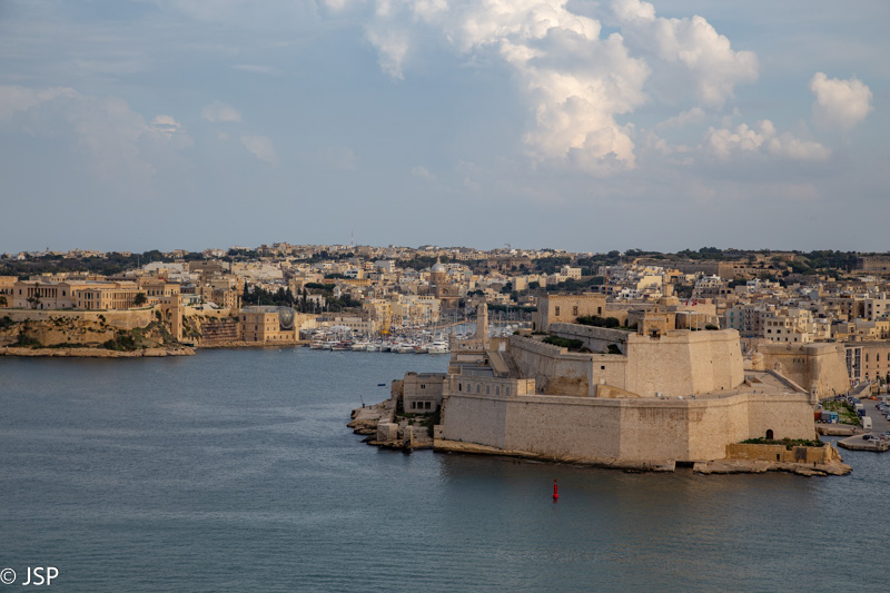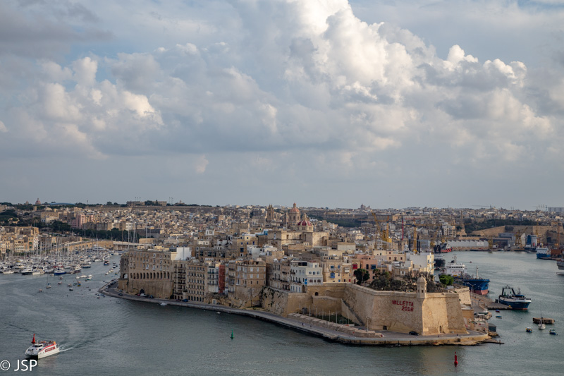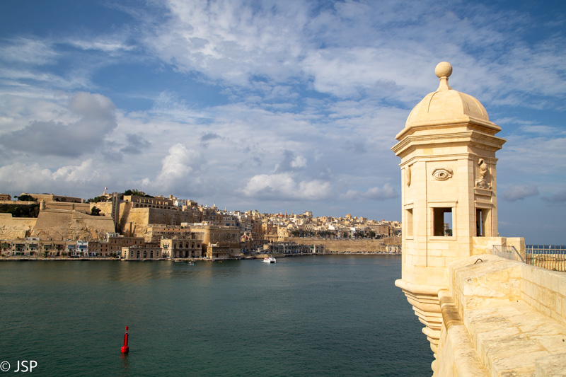 Kitoje pusėje kopiame aukštyn ir centrine Senglėjos gatvele einame link uosto. Mūsų tikslas – Gardjola sodas, siaura trikampė erdvė iškyšulio pabaigoje. Sodą juosia akmeninė siena su žaviu bokšteliu viduryje. Nuo čia atsiveria puikūs vaizdai į Valetą.