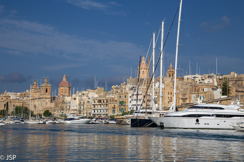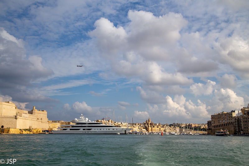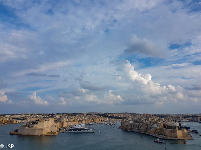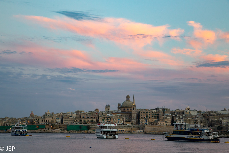 Po kelių minučių mane pasivijęs vyras sako niekur nebebėgti, o jis tuoj sugrįšias. Stoviu prie parapeto, gėriuosi vaizdu, fotografuoju, o vyras netrukus atneša didžiulę porciją bealkoholinio kokteilio, sudėtimi primenančio pina colada. Sėdim ant suoliuko krantinėje, gurkšnojam skanų gaivų gėrimą, tolumoje lyg gražus miražas švyti Valeta, kitoje pusėje virš uoste besisupančių jachtų leidžiasi saulė. Tai vienas iš gražiausių šios gražios ir įspūdingos dienos momentų.