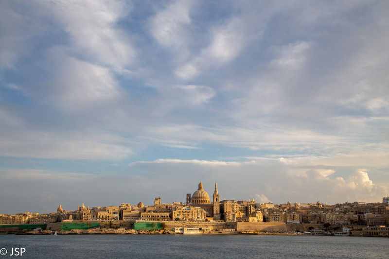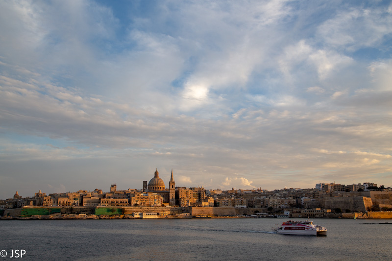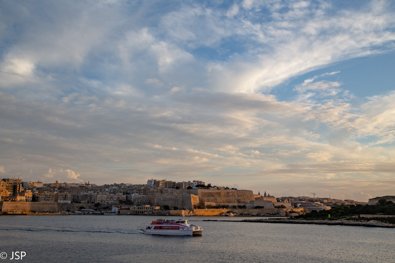 Galiausiai aš susigriebiu, kad mums dar reikia pasiekti Sliema ir pamatyti saulėlydį. Kai vos ne bėgte atlekiame į prieplauką kitoje Valetos pusėje, ten jau laukia didžiulė eilė. Net suabejojame, ar tilpsime į keltą, ar neteks laukti sekančio (jie plaukia irgi kas pusvalandį). Jei netilpsime, nebebus prasmės plaukti į Sliemą, nes saulėlydis bus jau pasibaigęs. O dar, kaip tyčia, užplaukia tiršti debesys, ir nepanašu, kad jie greitai išsisklaidys. Vyras bamba, kad neverta gaišti laiko (užtruksim mažiausiai pusantros valandos), nes tik paplaukiosim pirmyn-atgal ir nieko gero nepamatysim. Bet aš nepasiduodu, vildamasi, kad gal mums visgi pasiseks. Keltas atplaukia, mes į jį telpam (gerai, kad atėjom anksčiau, nes tilpo toli gražu ne visi), ir netrukus jau plaukiam į Sliemą. Viduryje įlankos staiga vėl nušvinta saulė, nusileidusi žemiau nei debesų ruožas. Valetos mūrai ir bokštai, nušviesti švelnios auksinės šviesos, atrodo kaip pasakoje. Kartais reikia tiesiog tikėti, kad pasiseks! Išlipusi iš kelto, bėgu krantine tolyn, norėdama pamatyti ir nufotografuoti kuo gražesnę Valetos panoramą.