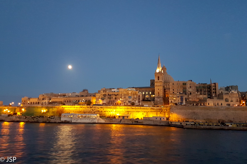 Keltas atgal į Valetą išplaukia jau prietemoje, o temsta čia taip greitai, kad atplaukiame jau beveik visai sutemus, taigi turime progą pasigrožėti ir naktinio miesto vaizdais nuo vandens. Pavakarieniaujame nedideliame bistro vienoje iš senamiesčio gatvelių. Čia vos penki staliukai, maistas skanus, padavėjas labai šnekus ir draugiškas. Po vakarienės neskubėdami einame iki Aukštutinių Barrakka sodų, dar kartą pasinaudojame liftu ir grįžtame į parkingą. Šiandien buvo viena geriausių mūsų dienų Maltoje (geresnė buvo tik ta, kai ėjome pakrantės taku virš Golden Bay ir kitų dviejų įlankų). Žinojau, kad Valeta yra gražus miestas, bet nesitikėjau, kad man čia taip patiks. Važiuodami namo kalbamės, kad visai neblogai būtų kada nors sugrįžti į Maltą tiesiog savaitgaliui, radus pigių bilietų, ir visą laiką praleisti Valetoje, niekur neskubant ir išvaikščiojant visus šio jaukaus ir senove dvelkiančio miesto kampelius.