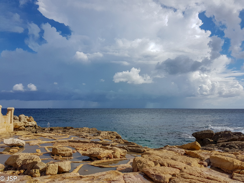 Lietus trumpam liaujasi tik pavakare. Man jau pabodo sėdėti apartamentuose, tad pasinaudoju proga apeiti Marsaskalos rajoną, kuriame gyvename. Einu pakrantės taku aplink iškyšulį, pučia stiprus vėjas, smarkiai vėsu. Ruduo. Jokių ypatingų vaizdų čia nėra – tiesiog smagu pasivaikščioti, pramankštinti kojas, pakvėpuoti gaiviu jūros oru. Kol vėl neužslenka lietaus debesys ir tenka grįžti vidun.