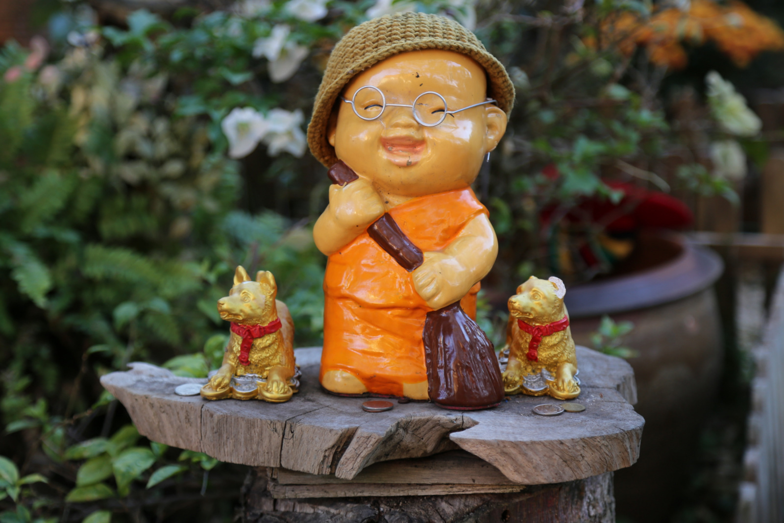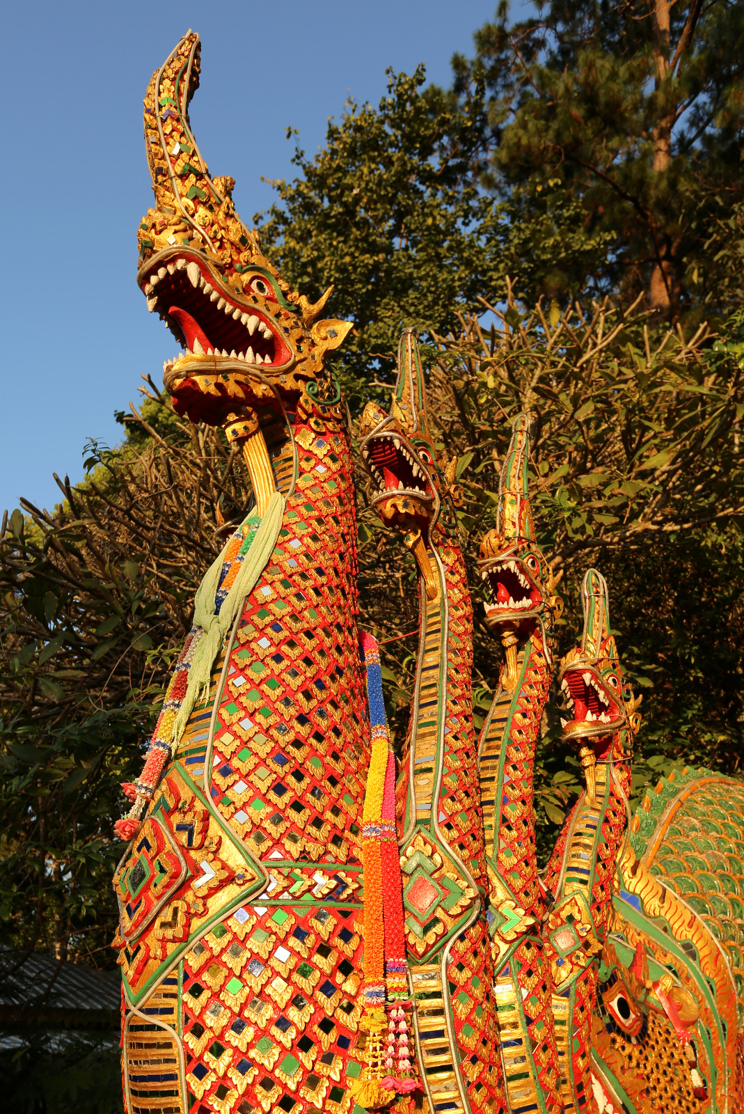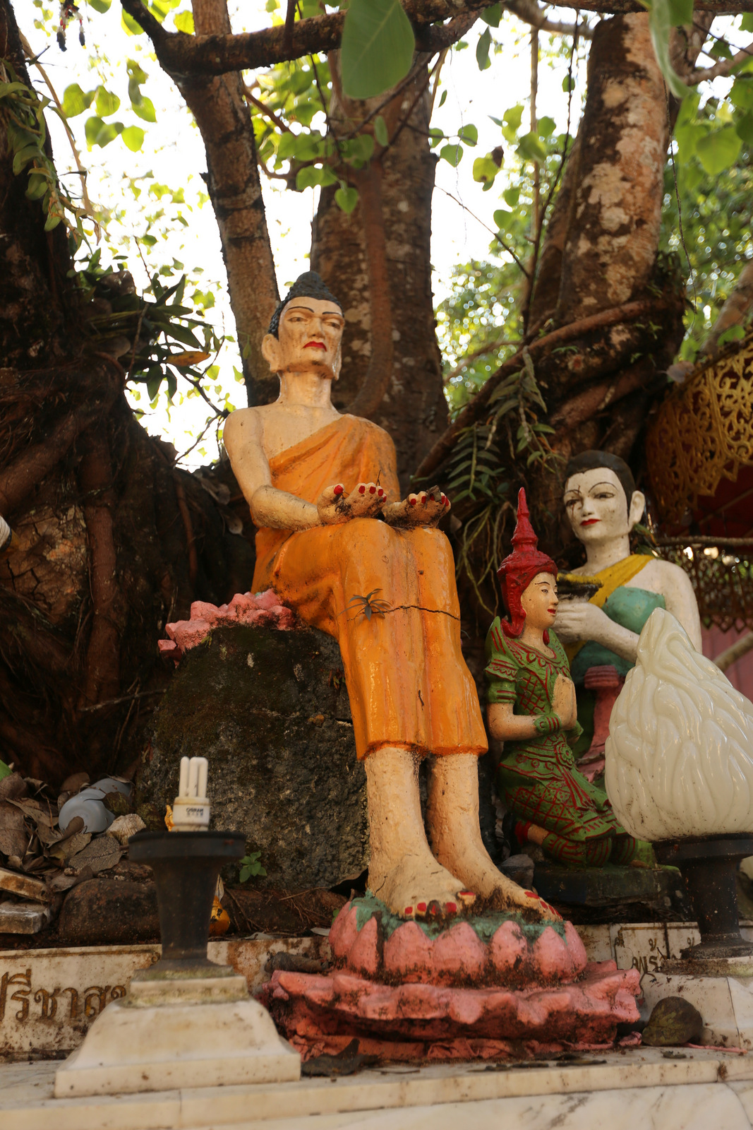 Tokių savotiško stiliaus skulptūrėlių matėme ir Bankoke, ir Chiang Mai centre, bet čia jų ypatingai daug. Kokia jų reikšmė ir prasmė, nežinau iki šiol, bet atrodo linksmai.