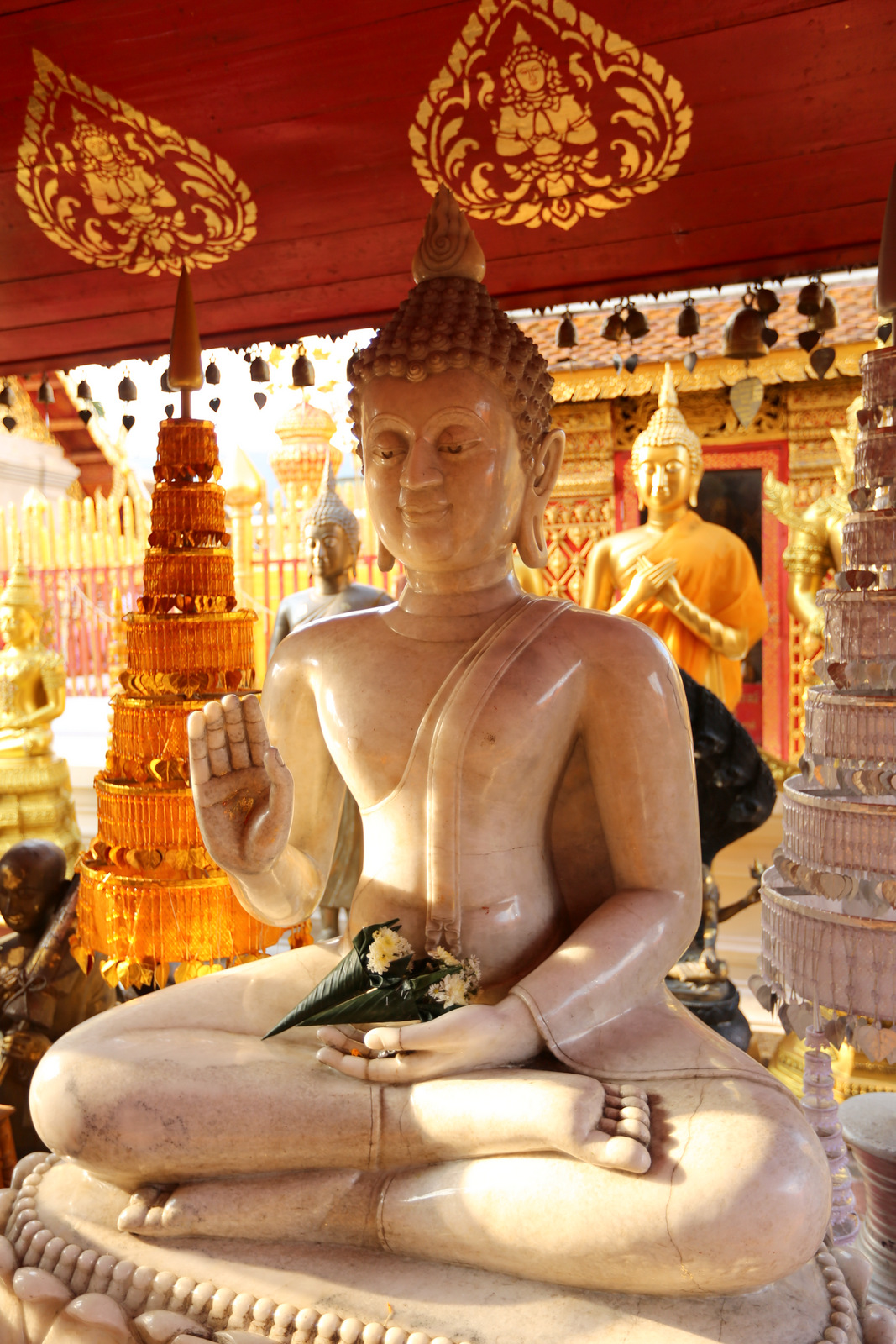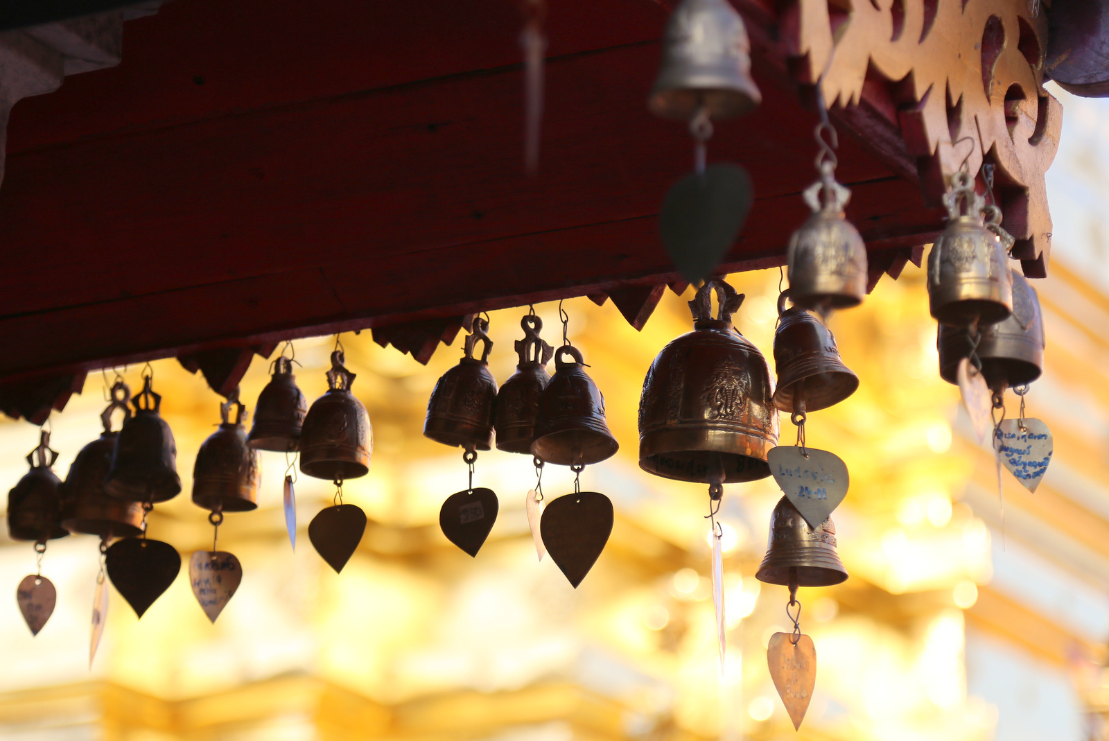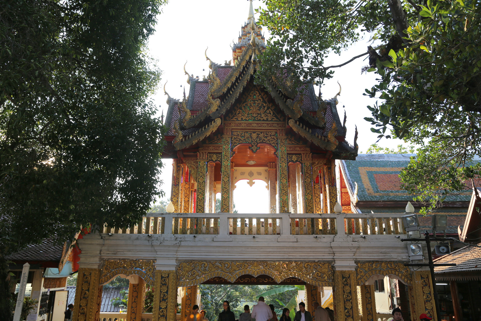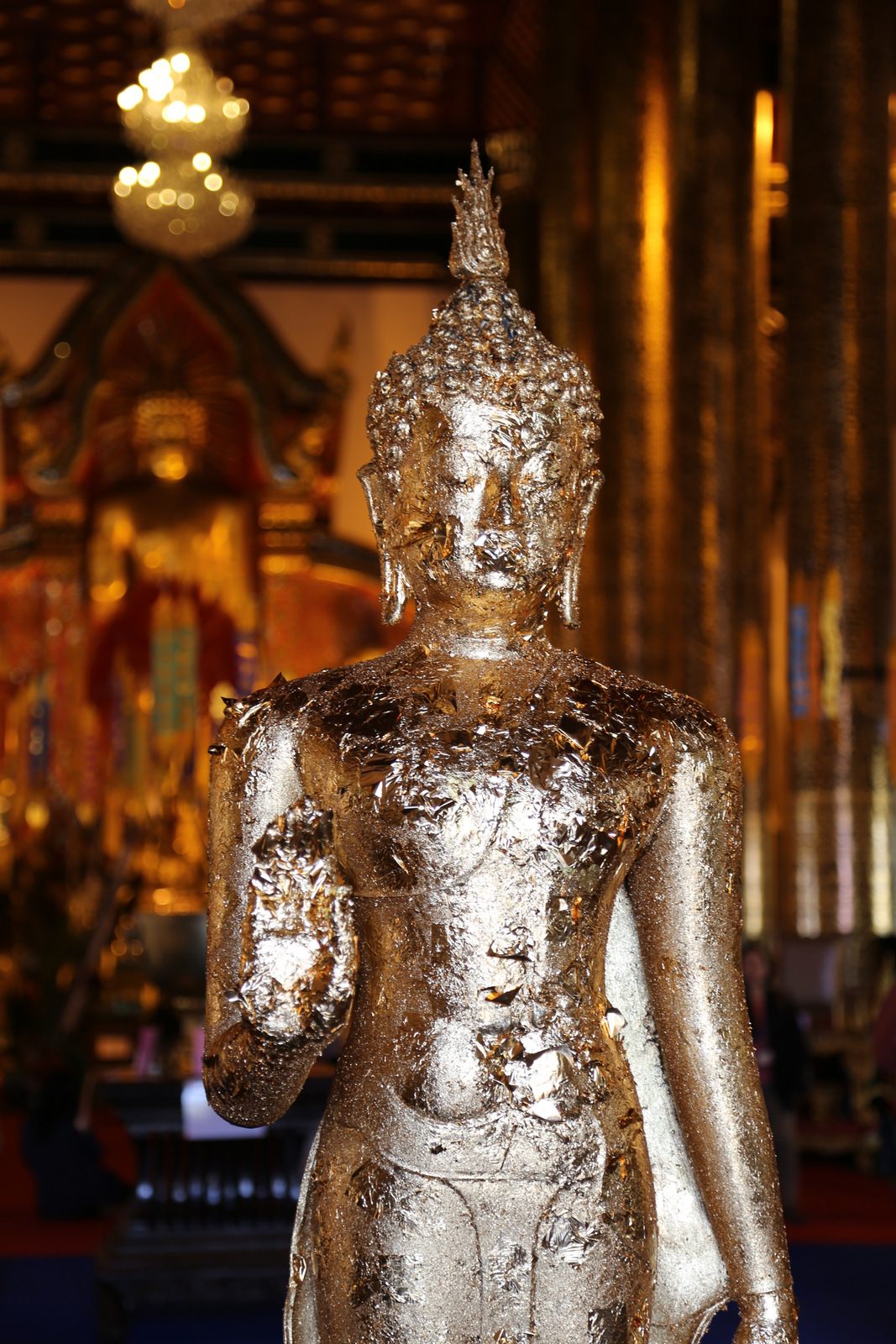 Šventykloje – tikras knibždėlynas. Vyksta pamaldos, žmonių prisirinkę gausybė, meldžiasi ir atskirose salėse, ir kiemeliuose, ir grupėmis, ir po vieną. Taip ir nesuprantam, ar šiandien kažkokia ypatinga šventė, ar čia kiekvieną šeštadienį tokia spūstis. Ir maloniai nustembam dėl budistų tolerancijos kitatikiams. Kai vyksta pamaldos krikščioniškoj bažnyčioj, turistai kaip taisyklė į vidų neįleidžiami, į musulmonų mečetes kitatikiams dažniausiai išvis draudžiama užeiti, Hindu šventyklose irgi yra visokių apribojimų, o į budistų šventyklas – maloniai prašom, net jei ir pamaldos vyksta, lankytojai jiems netrukdo.