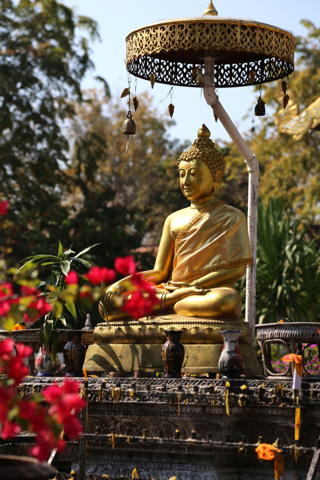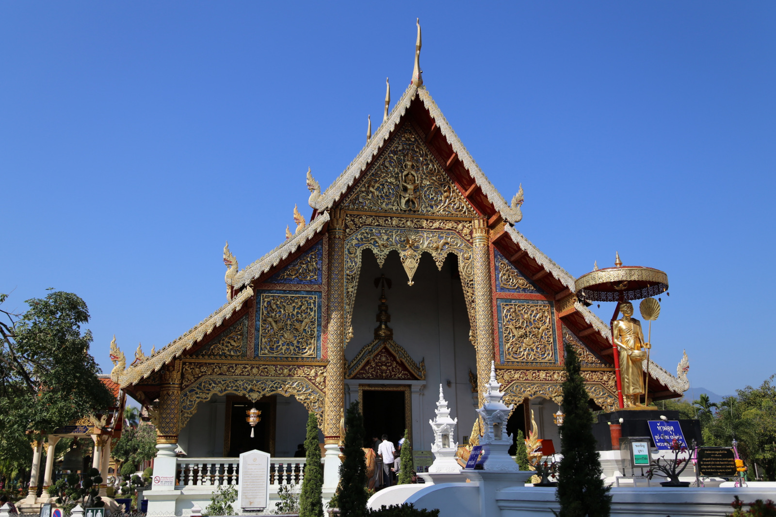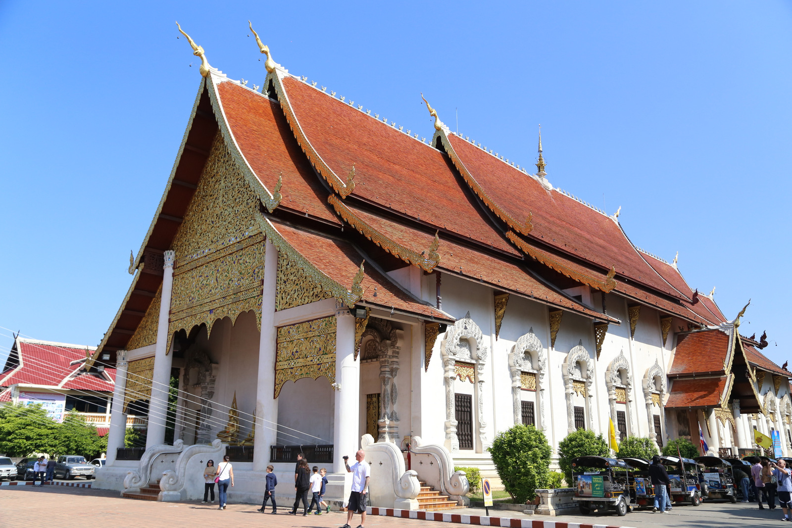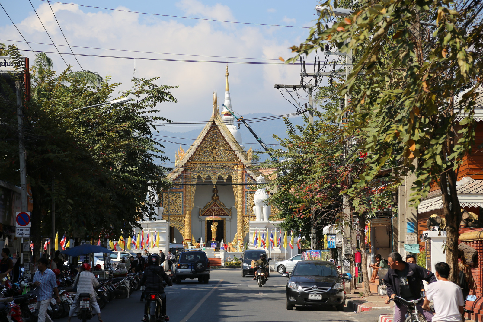Wat Phra Singh šventykla – pati lankomiausia Chiang Mai. Didžiulėje teritorijoje išsimėčiusios kelios (o gal net keliolika, jau nepamenu) didesnių ir mažesnių šventyklų. Pirmiausia einam į pačią didžiąją. Fotografuoti galima, tik rekomenduojama tai daryti taip, kad fotoaparatas nežvelgtų į Budą iš viršaus – tai yra nepagarbos ženklas. Ir jau visai prastai, jei atsisėsite ant grindų prieš skulptūras ir atsuksite į Budą savo kojų pėdas. Sėdėti rekomenduojama lotoso poza, kad pėdos būtų saugiai nusisukusios į kitą pusę.