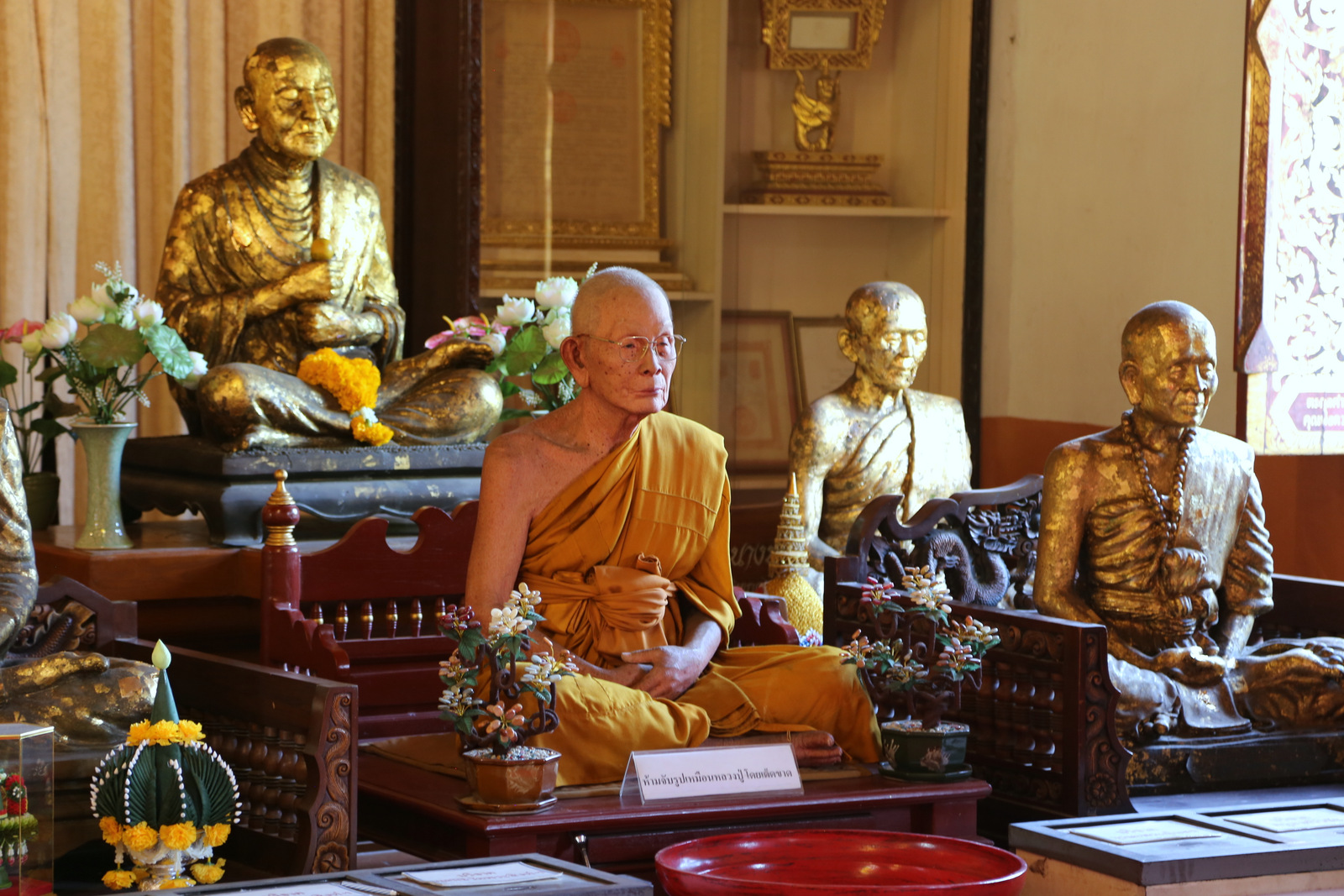 Gėda prisipažinti, bet labai norėjosi pačiupinėti šį garbų senolį, įsitikinti, kad jis tikrai gyvas žmogus iš kūno ir kraujo. Per tą laiką, kol buvome šventykloje, jis ne tik nepajudėjo, bet rodos net ir nesumirksėjo.