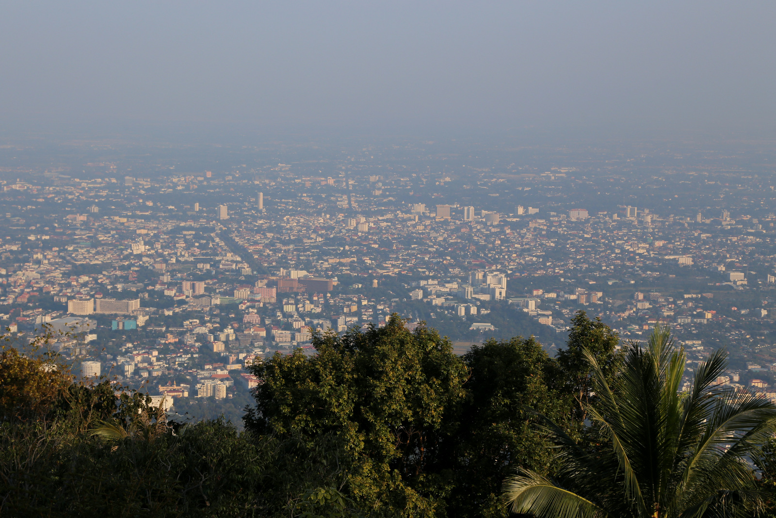 Buvau prisiskaičiusi apie puikius vaizdus nuo Doi Suthep kalvos – deja, jokių ypatingų vaizdų nerandame, matosi tik lengvam rūke paskendęs modernus miestas žemai slėnyje.