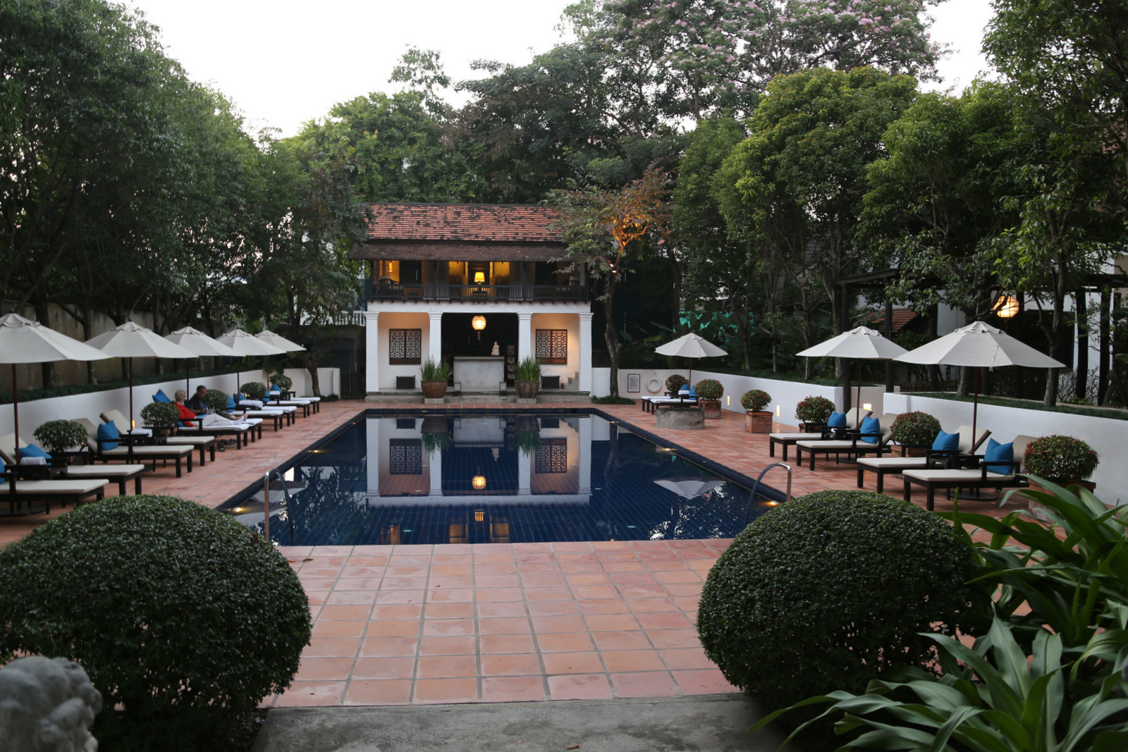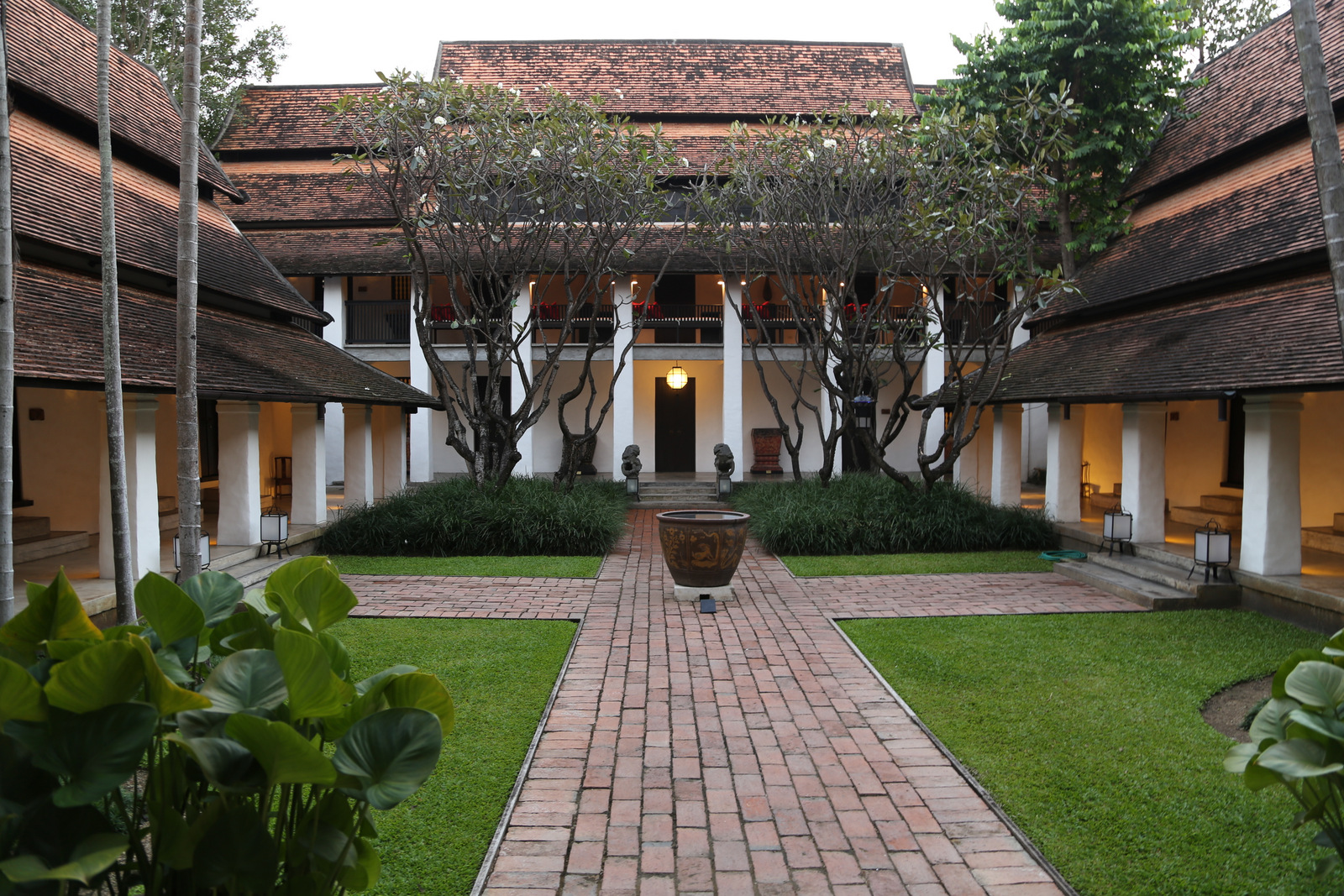 Rachamankha viešbutis įsikūręs senajame Chiang Mai rajone, prieš keletą amžių pastatytame didžiuliame privačiame name su vidiniais kiemeliais, vėsiom kolonadom ir jaukiais senoviniais baldais apstatytais kambariais. Kambarys mums dar neparuoštas, taigi paliekam daiktus registratūroje ir einam į miestą.